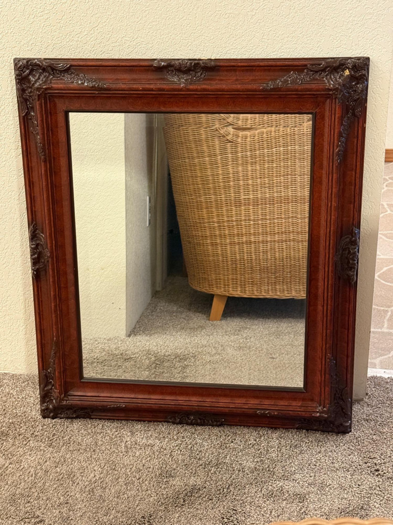 Ornate Wood Framed Bevel Wall Mirror 27.5x31.5”