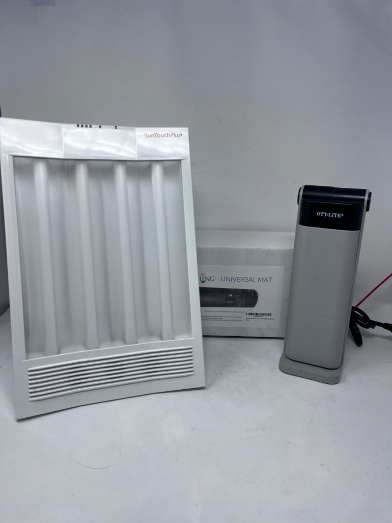 SunTouchPlus–OTT-LITE-Earthing Universal Grounding Mat SunTouchPlus fits on a table top. Tested: Powers on. OTT-LITE foldable therapy light. Not Tested.