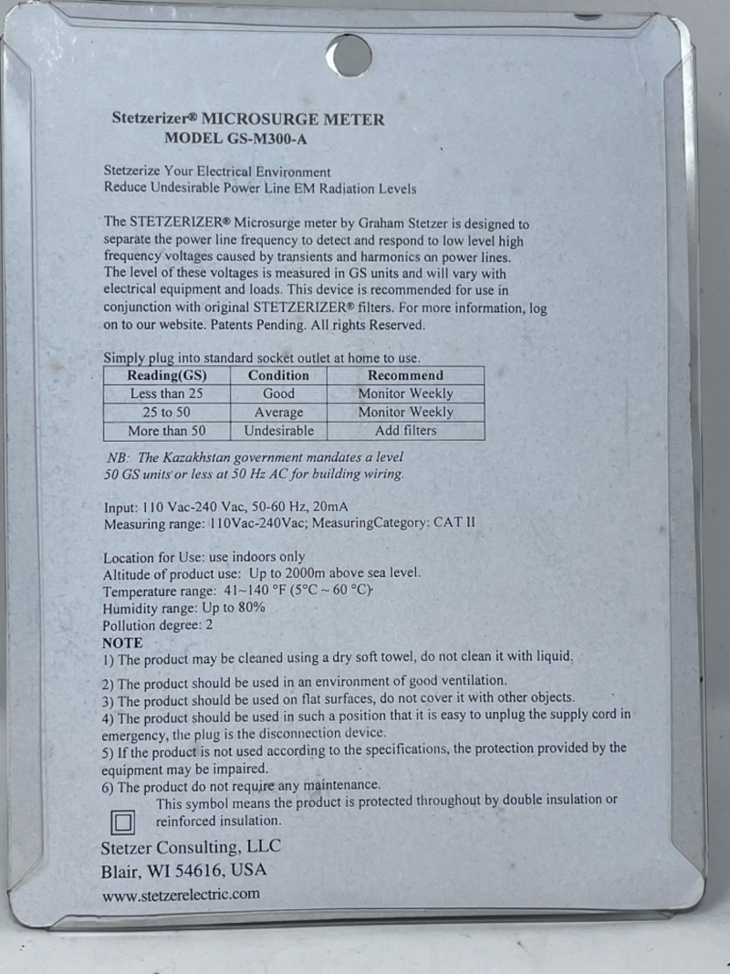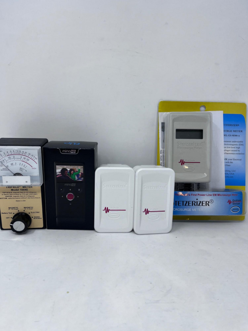 Stetzerizer Microsurge Meter & Filters - EMF Detector - Video Camera (2) Stetzerizer Powerline Electricity Filters Microsurge meter. New in box. Not tested. Not tested. TriField EMF Meter Model 100XE Tested: Works.