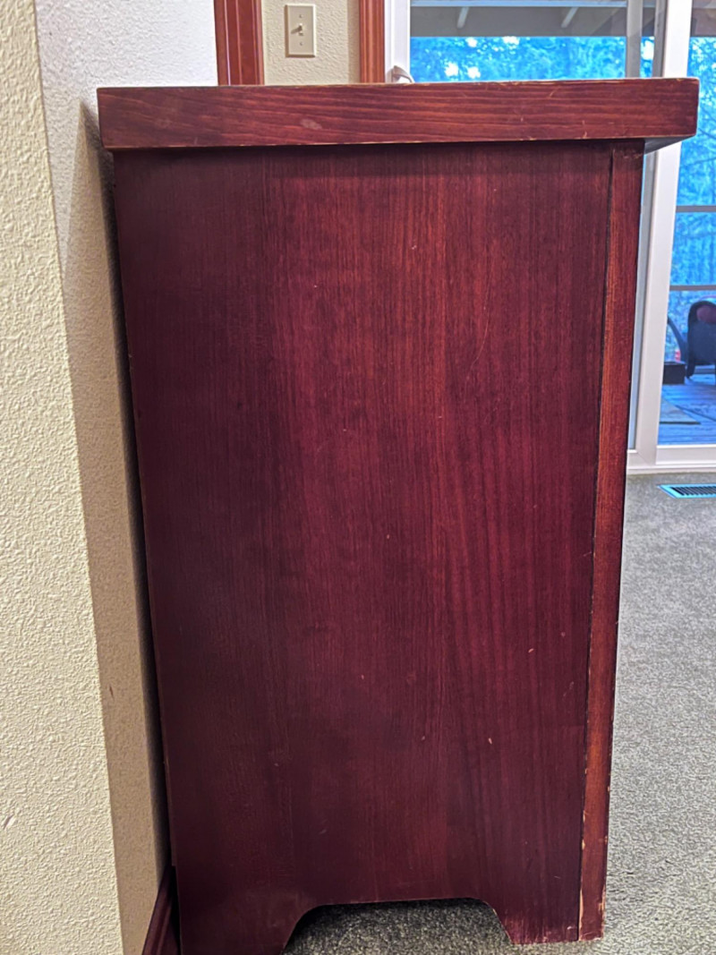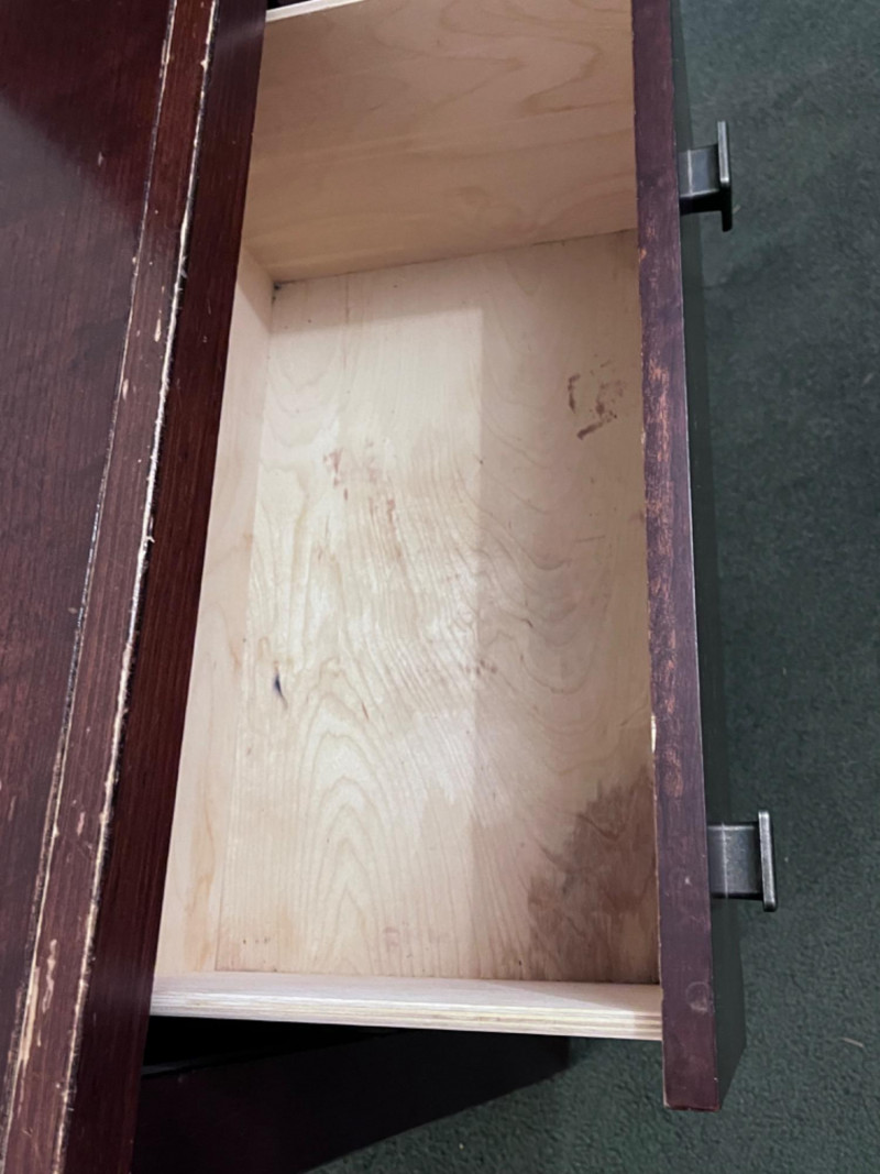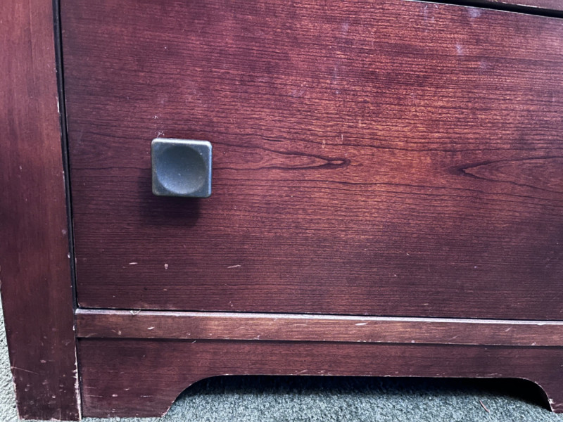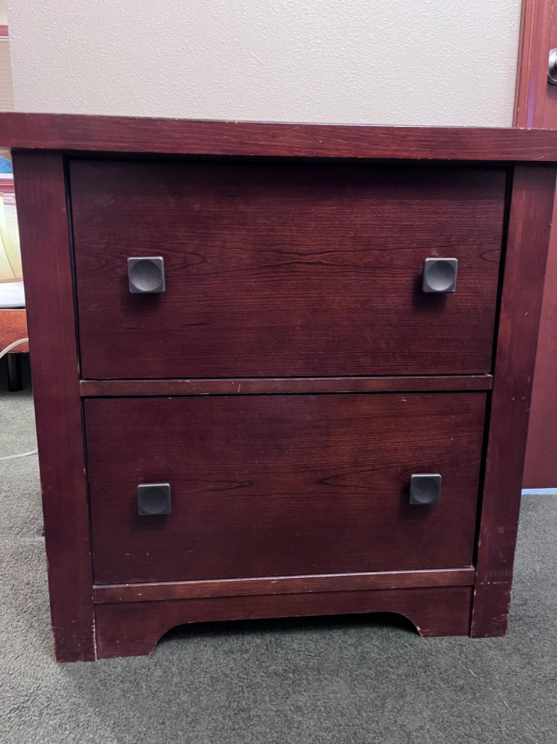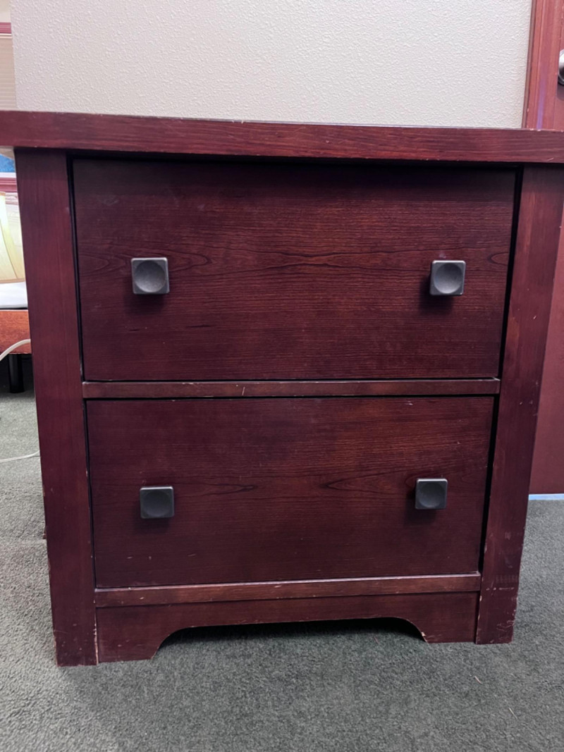 Modern Wood Cherry–Finish 2–Drawer Nightstand Scratches and scuffs on top. 28”x16”x28”