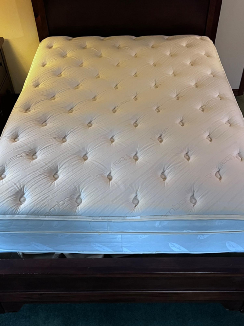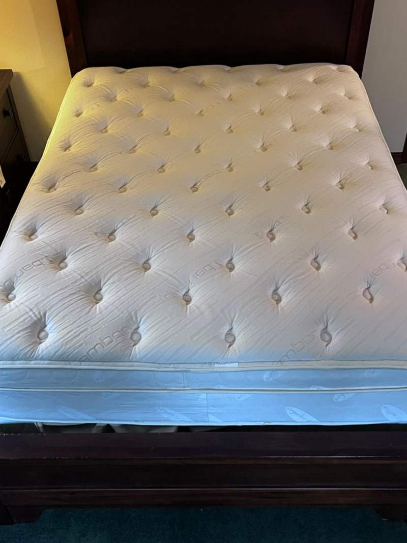 Queen Sized Restonic HealthRest Harvard Mattress & Box Spring Mattress and box spring in good condition. Comes with bedding. Includes: Bedskirt Mattress Cover Pink blanket Two floral pillowcases White top and bottom sheet