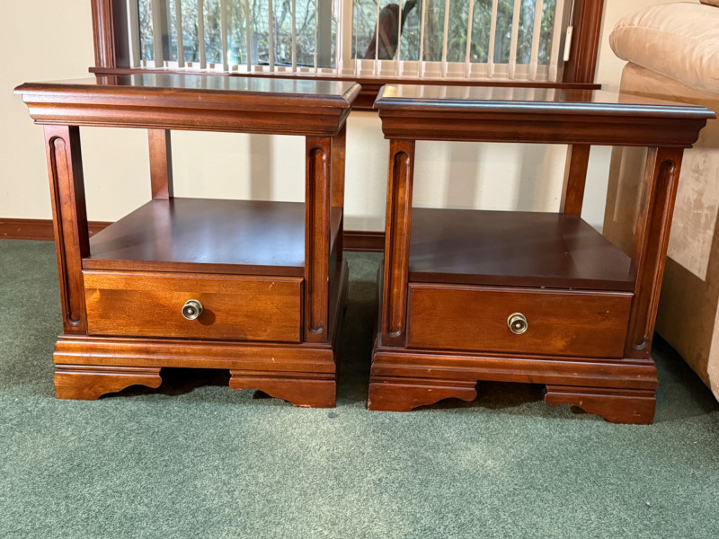 (2) Single Shelf Single Drawer Side Tables 22”x26”x23” tall.