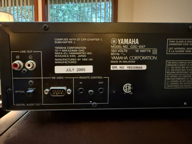 Yamaha 6 Disc CD Changer Powers on and drawer opens. Other functions not tested. Remote included.