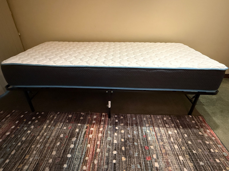 Sleepy’s XL Twin Mattress and Folding Frame 80”x37.5 Excellent condition mattress and frame folds in half.