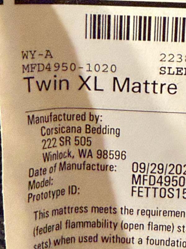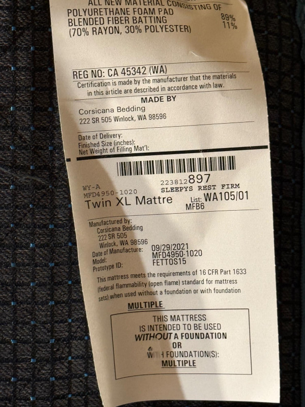 Lot # 38 - Sleepy’s XL Twin Mattress and Folding Frame