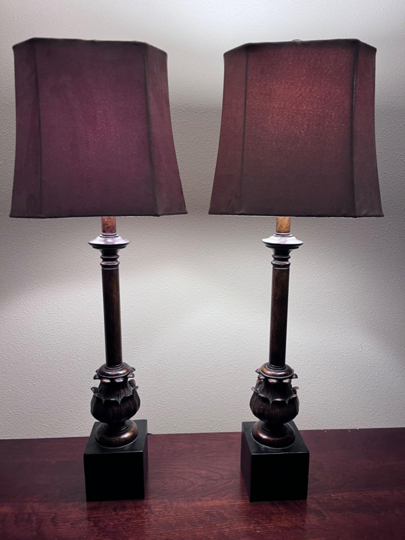 Oil–Rubbed Bronze Traditional Carved Table Lamp 11”x31.5” Tested: Works.