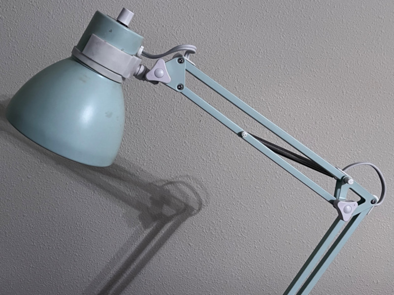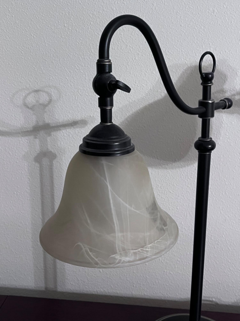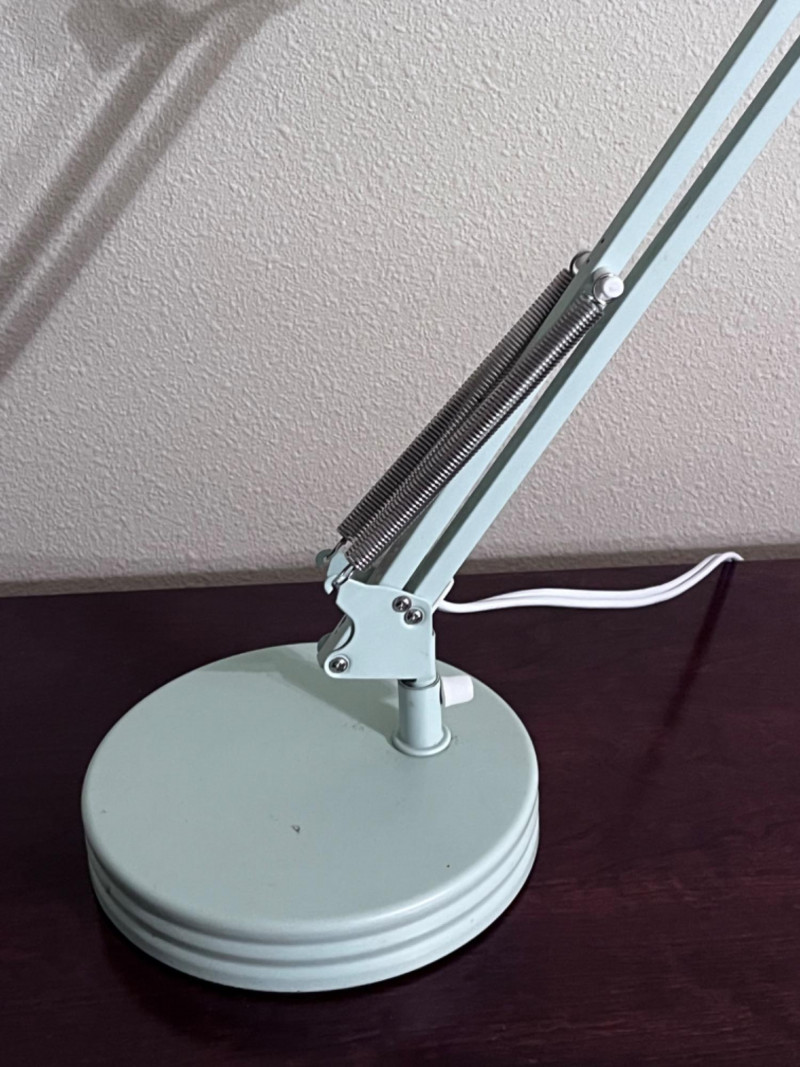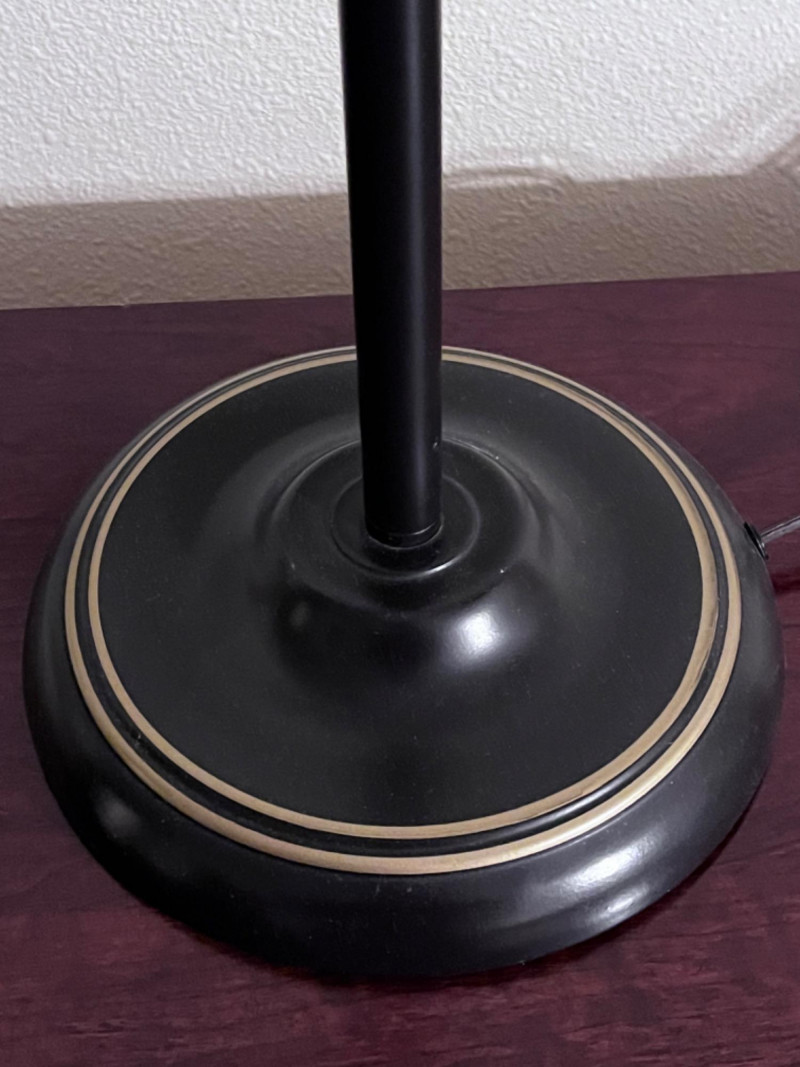 Banker’s Lamp & (2) Desk Lamps Light mint blue with white accents adjustable desk lamp has three points capable of adjusting. Adjustable black metal lamp with gold–toned accents. Glass shade. 16”x22.5” All tested: Works
