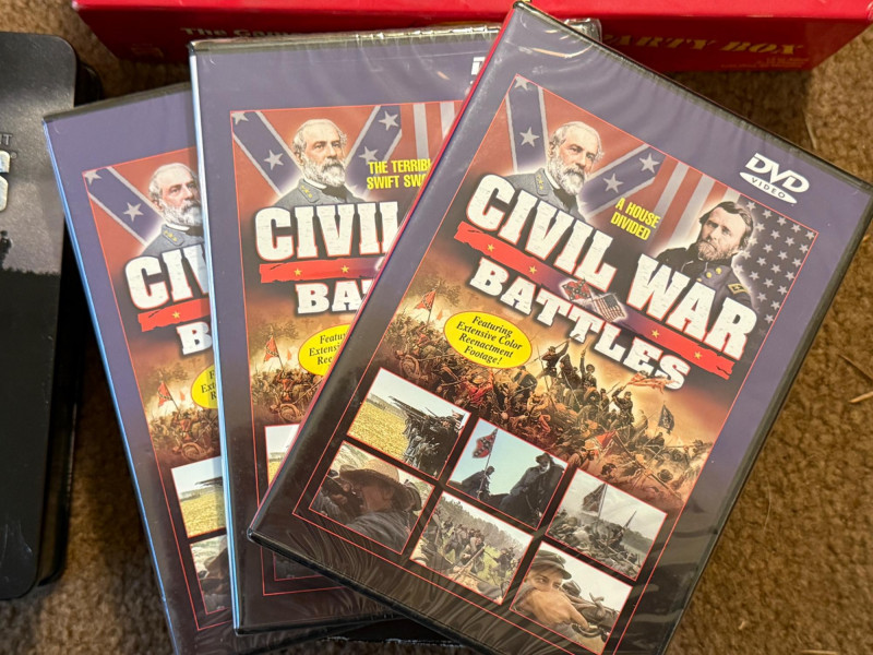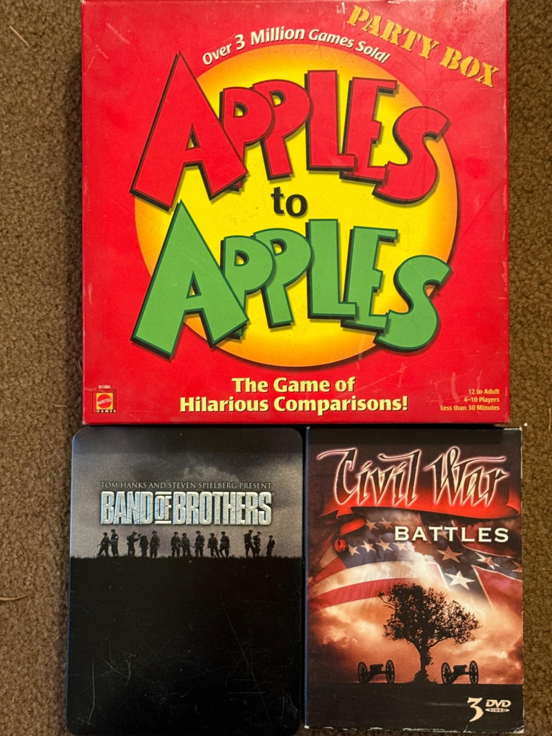 Evening entertainment with Band of Brothers- Civil War Battles & Apples to Apples Band of Brothers DVD set in a tin box. New Boxed Set of 3 Civil War Battles DVD’s
