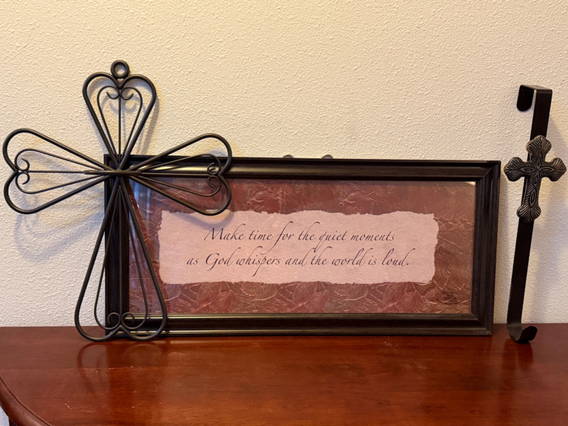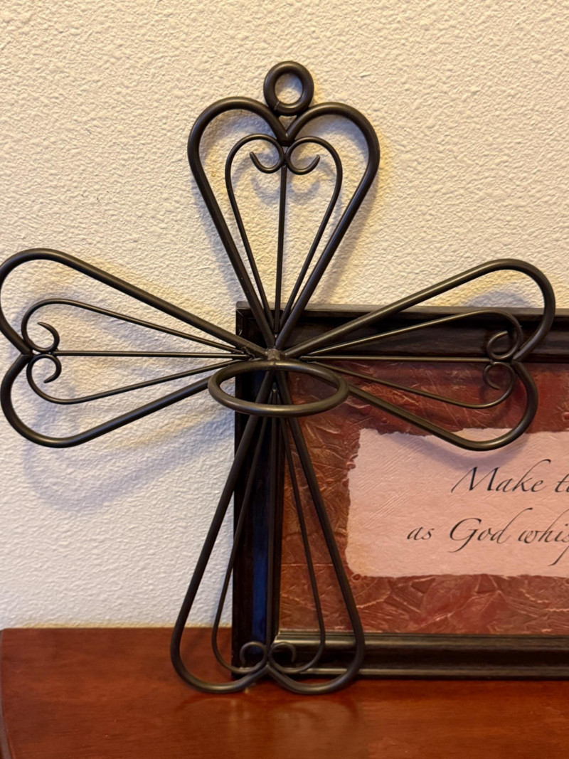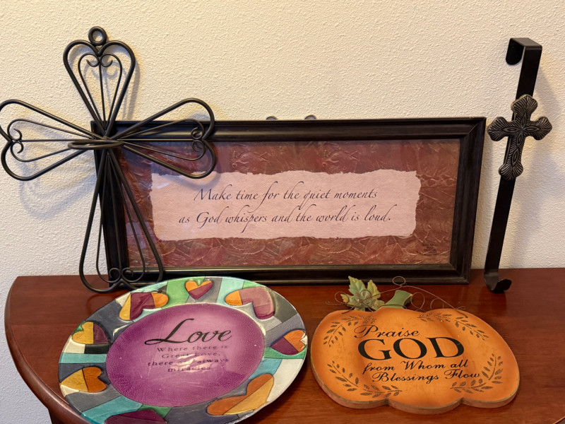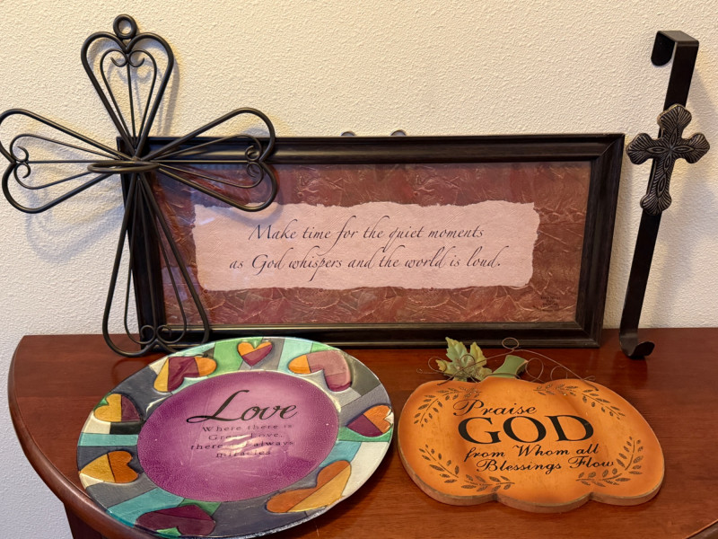 Blessings & Love Framed saying is 22.25”x10.5” Wire Metal Cross with Candle Ring Cross wreath hanger 12” Love plate Wood Pumpkin praising God.