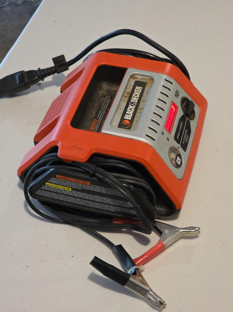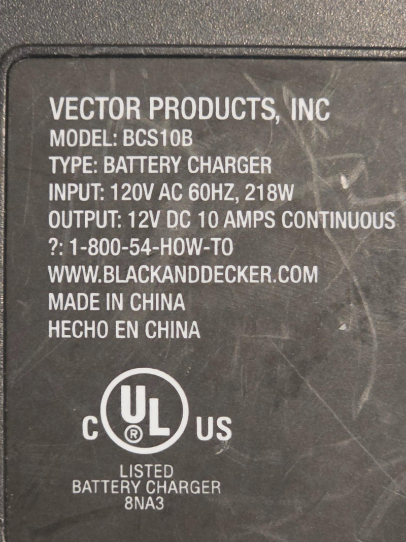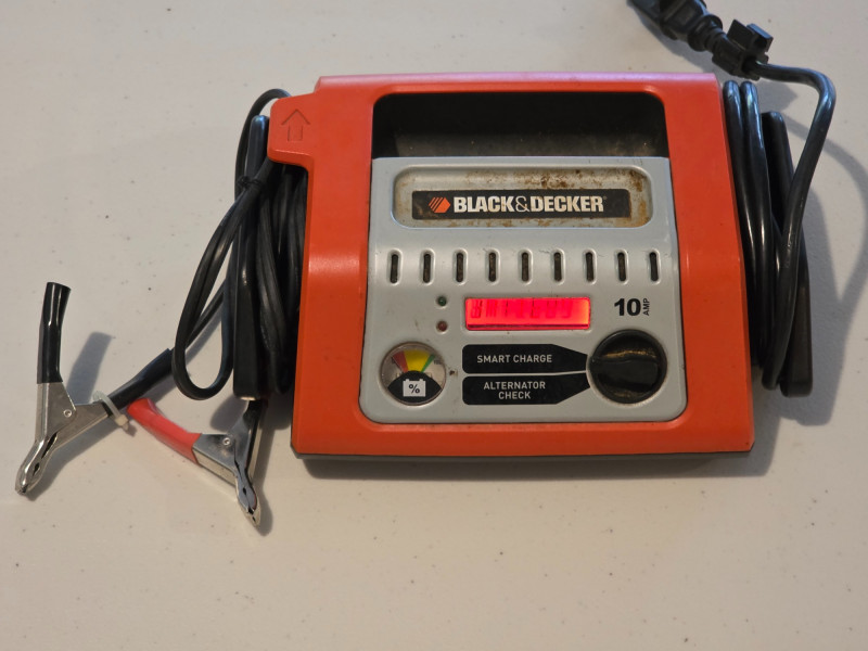 Black & Decker 10 Amp Automatic 12V Battery Charger Black & Decker Model #BCS10B 10 Amp fully automatic, high-frequency battery charger designed for 12-volt lead-acid automotive and marine batteries Tested - Works!