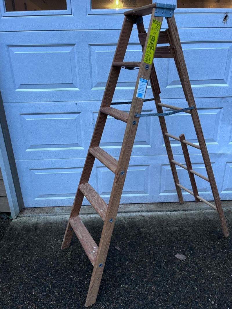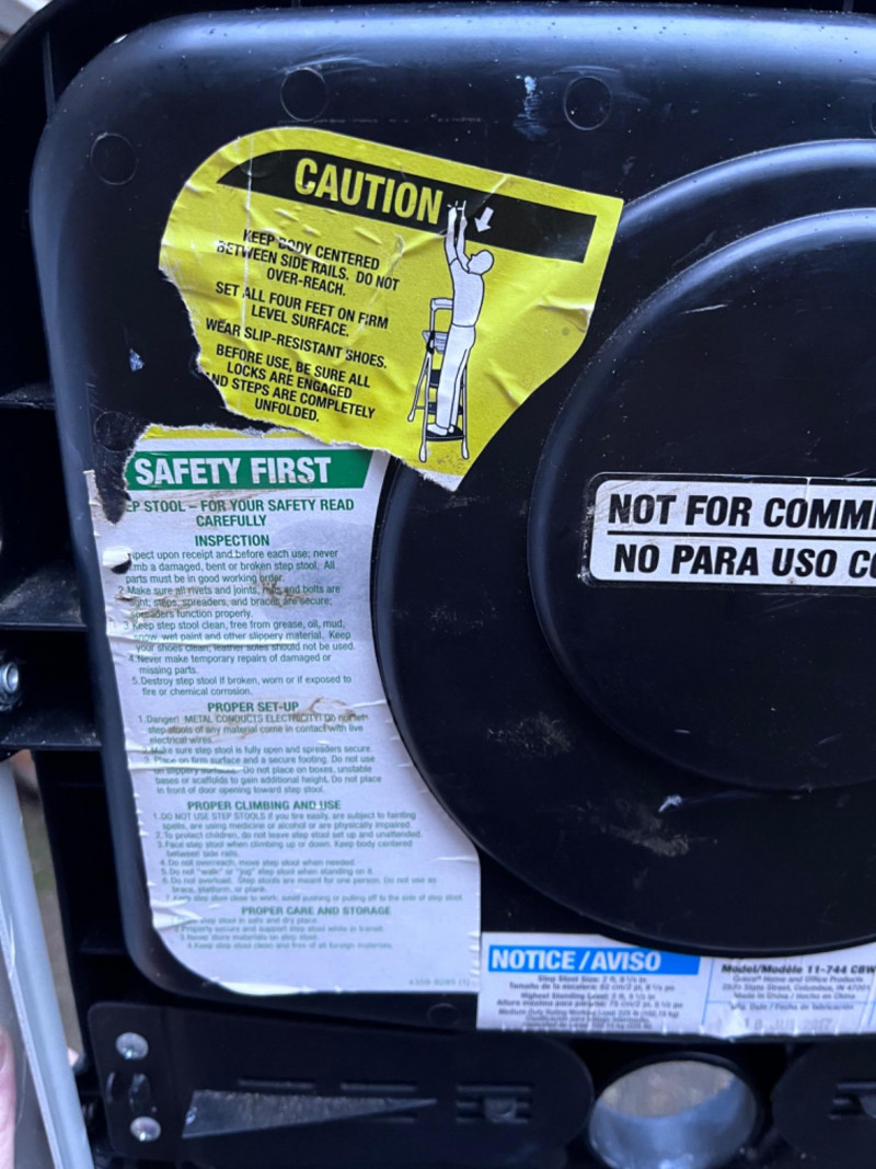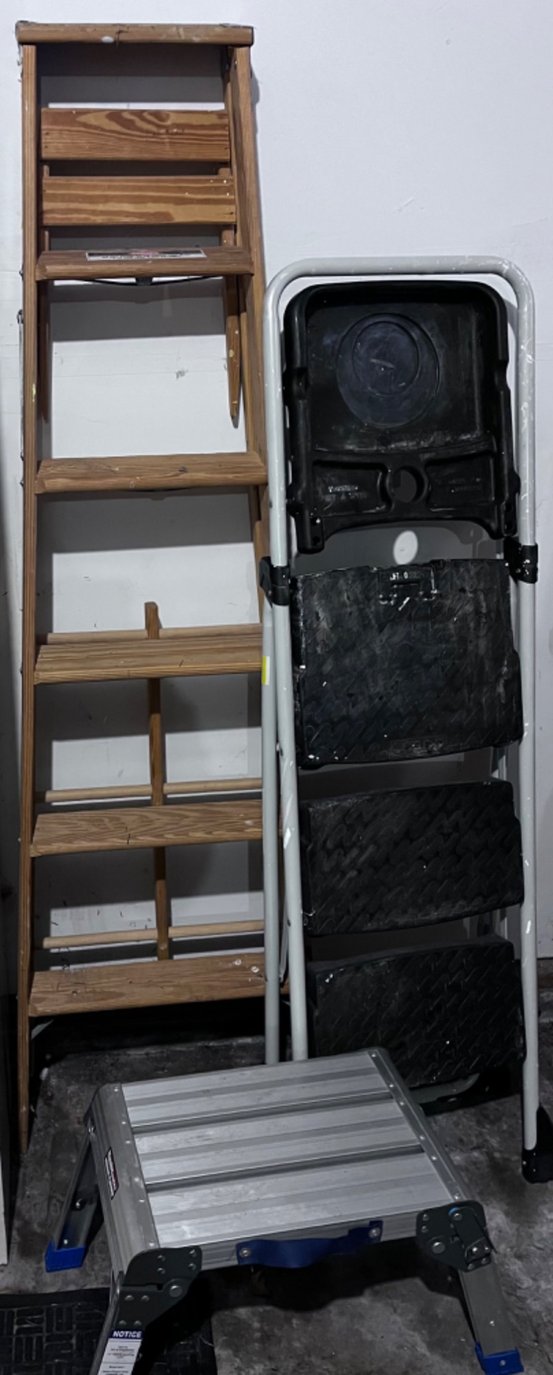 Ladder Lot #1 Highest standing level is 3’ 9”. 3–step stool with tray. Haul Master working platform. 13” highest standing level. 350 lbs. duty rating.