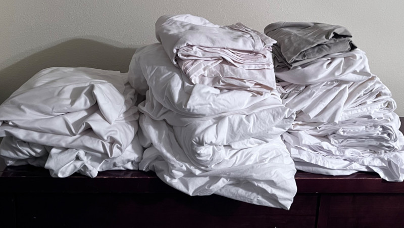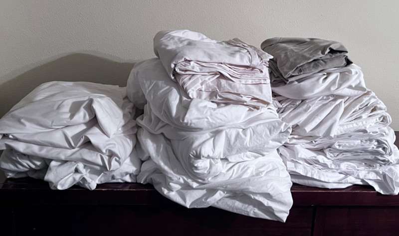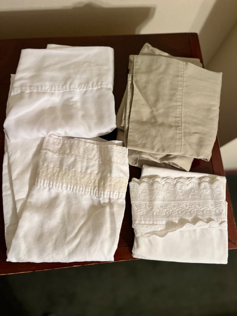 Lots of Linens! Twenty-one various pillowcases Six top sheets Three bottom sheet Possibly King and Queen.