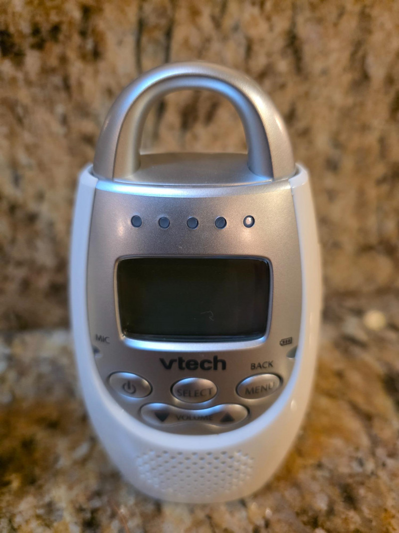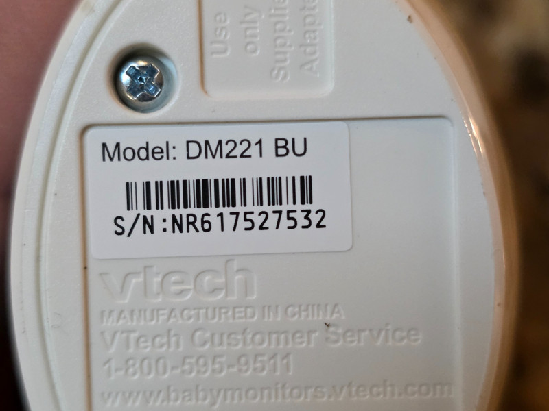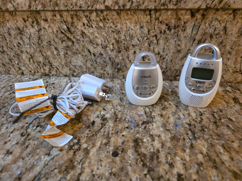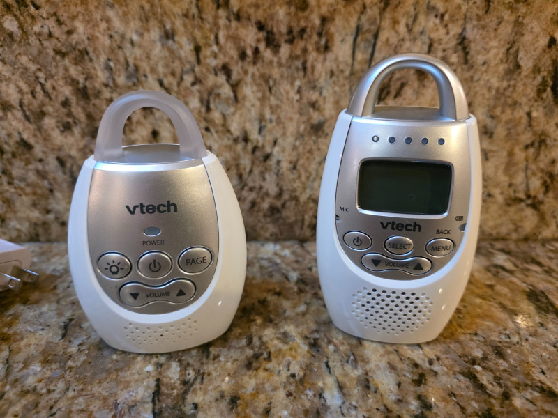 VTech Safe & Sound Digital Audio Baby Monitor VTech Model #DM221 The VTech Safe&Sound Digital Audio Baby Monitor is a baby monitor that uses DECT 6.0 digital technology to provide crystal clear transmission. It has a 1,000-foot operating range, an encrypted connection, and visual and vibrating alerts. It also has a VOX mode to help filter out excessive or background noises Includes both Parent & Baby units with power cords Tested - Works!