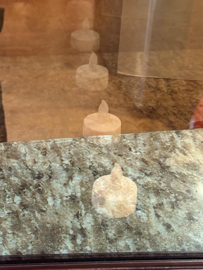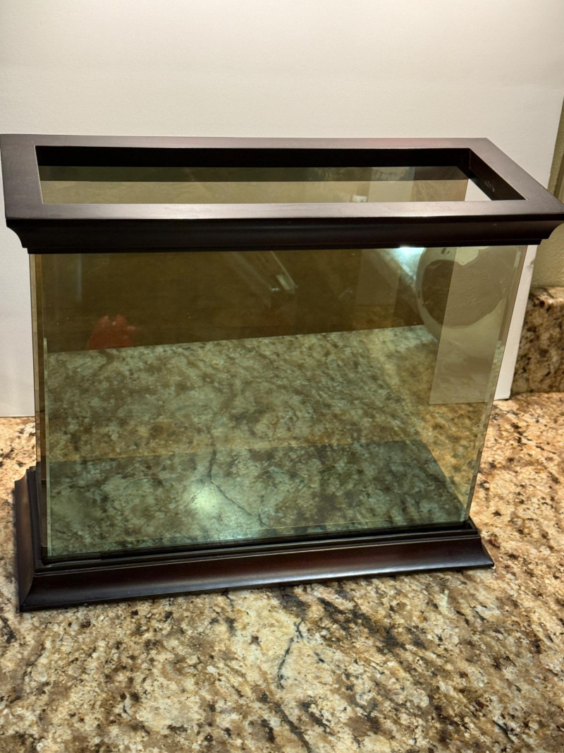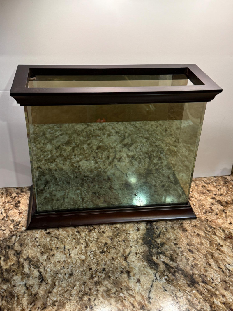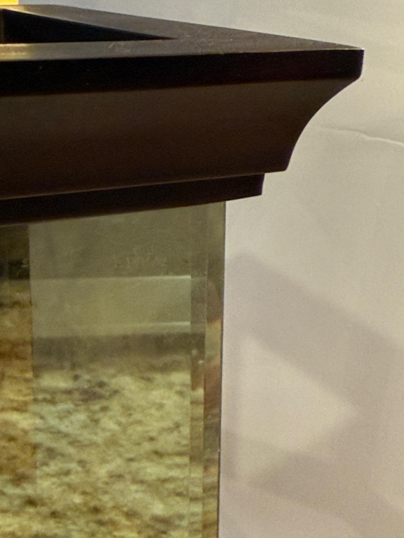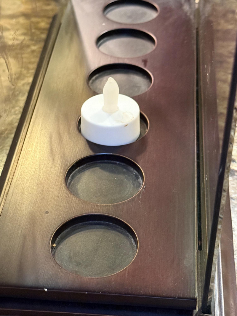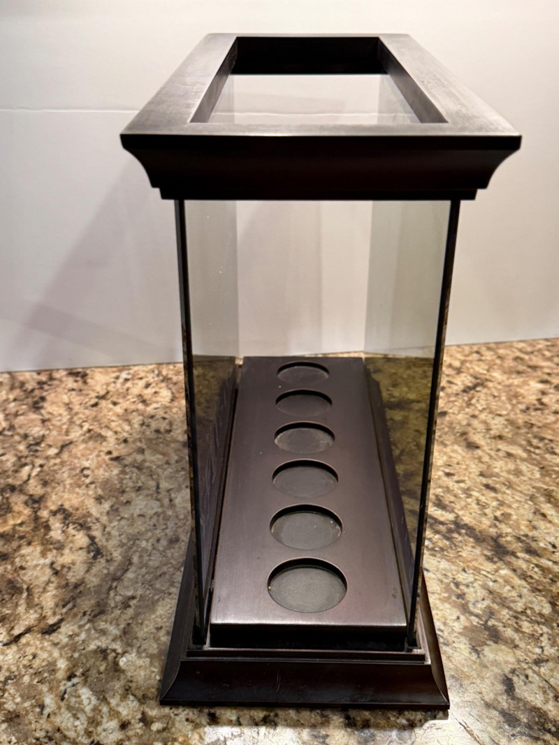 Beveled Edge Smoked glass and metal 6 tea light candle holder with open sides and top. 13.75”x5.75”x11.5”