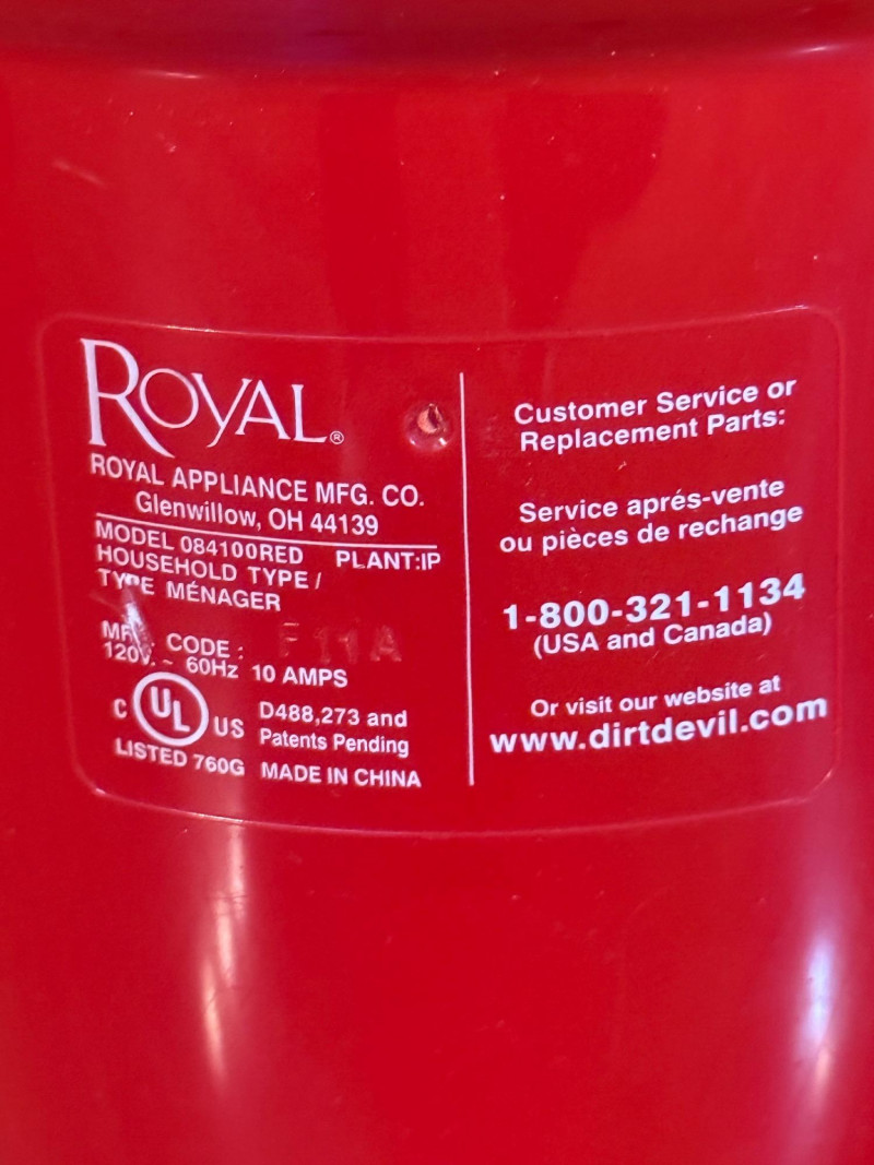Dirt Devil Power Stick Vacuum Cleaner By Royal Appliance Co. Tested, with surprisingly good suction. Model 084100RED