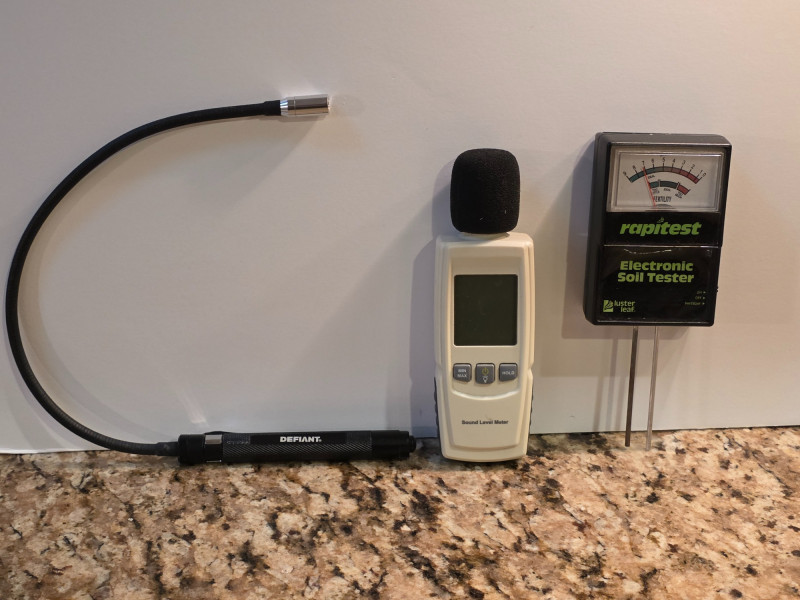 Sound Level Meter, Defiant Mini FlexLight & Electronic Soil Tester Sound Level Meter Defiant Mini FlexLight Electronic Soil Tester Tested - Works!