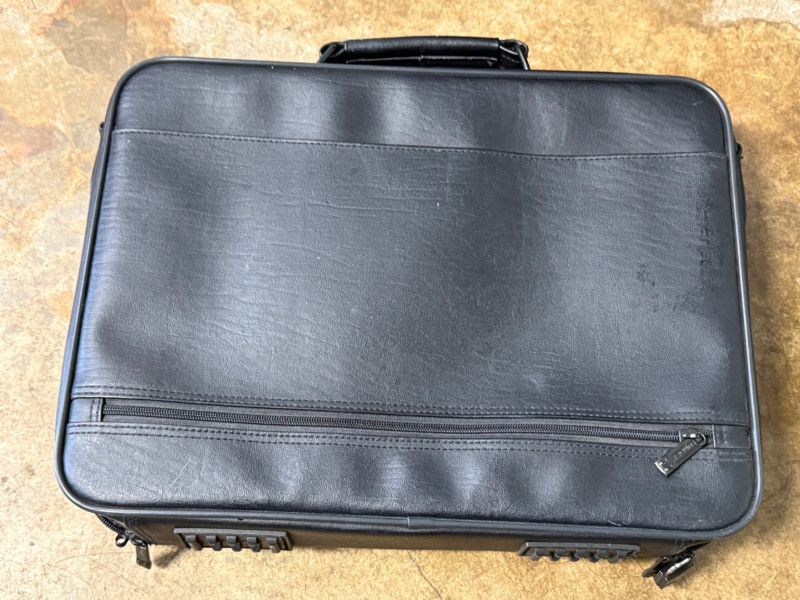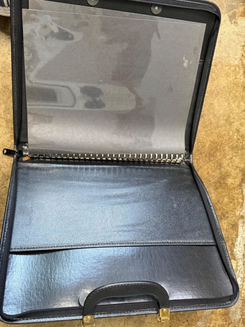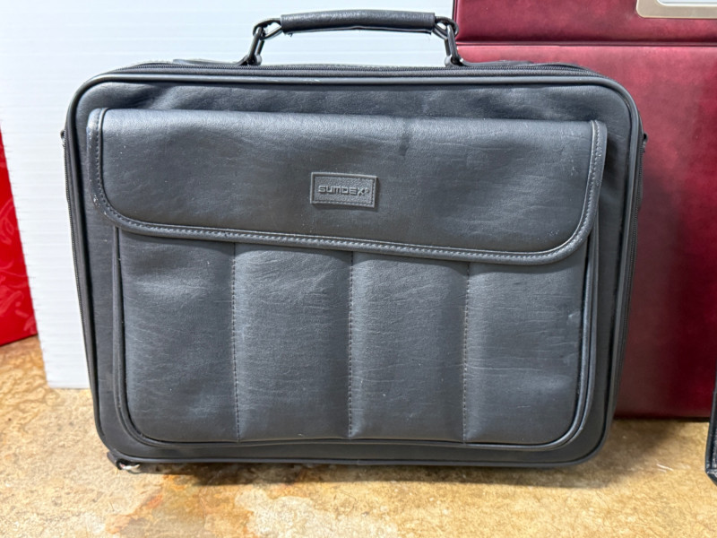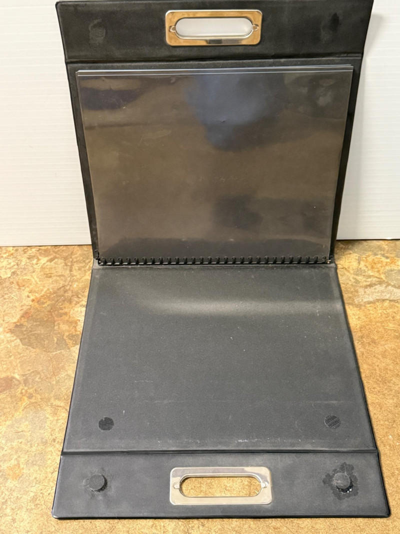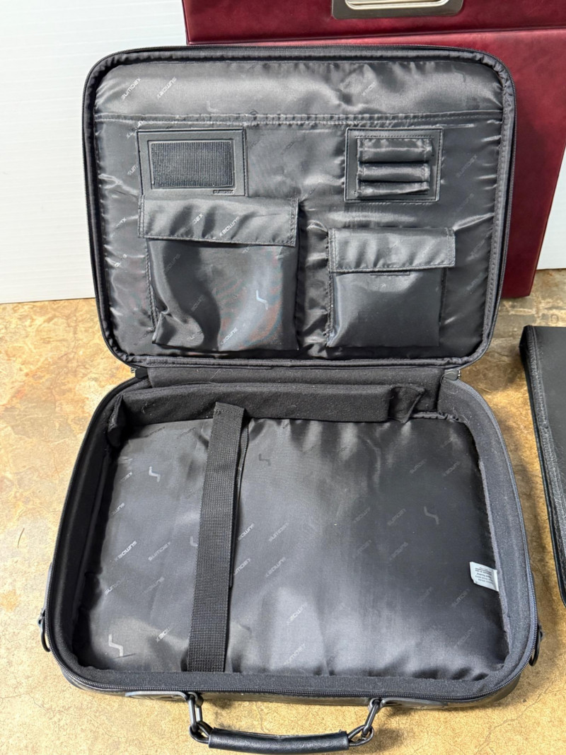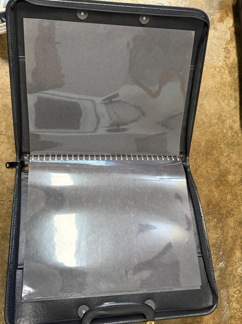(2) Art Portfolios & Artists Briefcase 16”x3”x12” 15.5”x15” Black NSM art portfolio with gold toned accents, two pockets, clear sleeves and zipper closure. 17” x13”