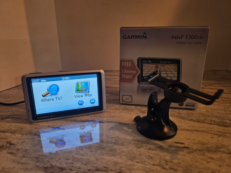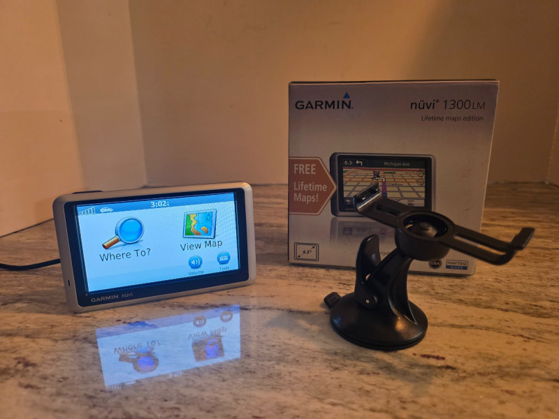 Garmin Nuvi 1300LM Vehicle GPS Unit #2 The Garmin Nuvi 1300 is a portable, entry-level GPS navigator featuring a 4.3" widescreen and turn-by-turn voice guidance. It offers basic navigation with features like auto-recalculating routes, ecoRoute for fuel efficiency, JPEG viewing, and travel tools Includes windshield mount, USB cable, manual and original box Tested - Works!