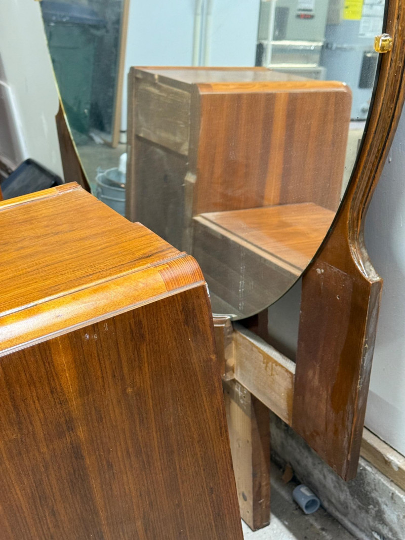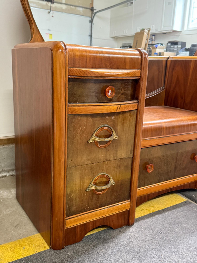 Vintage Art Deco "waterfall" vanity or dressing table. This style was popular during the 1920s to 1940s, with many pieces dating specifically to the 1930s Depression Era.
