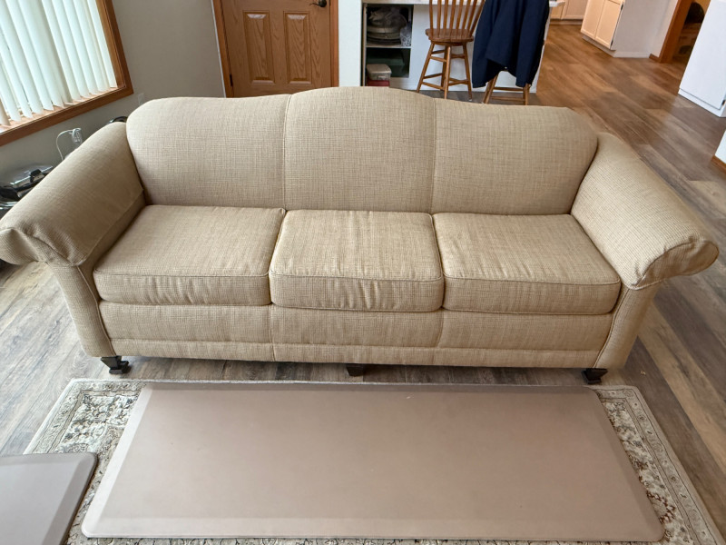*Super Clean and Firm Tweed Camel Sofa Camel color tweed upholstered sofa in excellent condition.