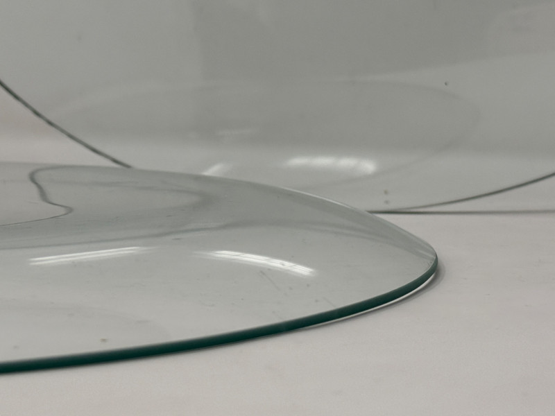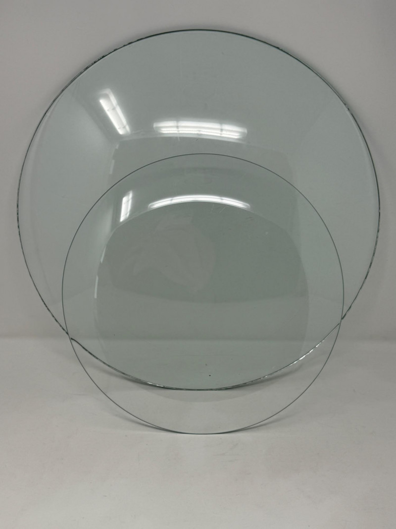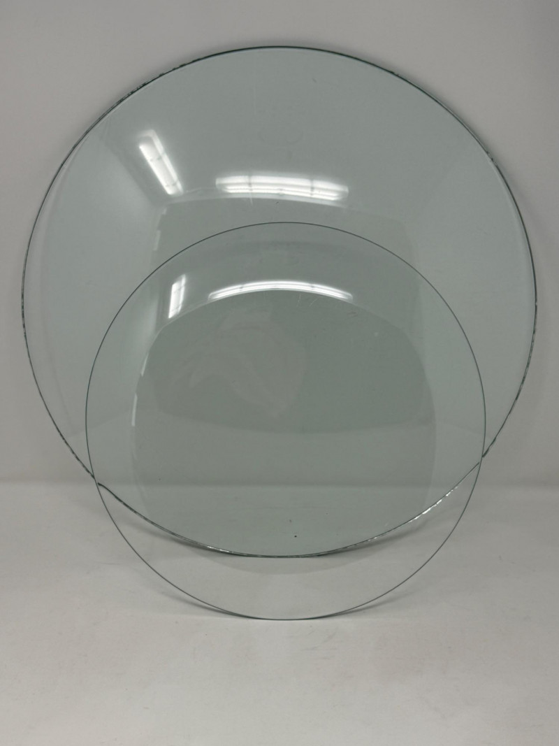 (2) Vintage Domed Glass Clock Fronts from the Missoula Clock and Jewelry Store. Measuring 18”x1/4” and 13.25”x1/8”
