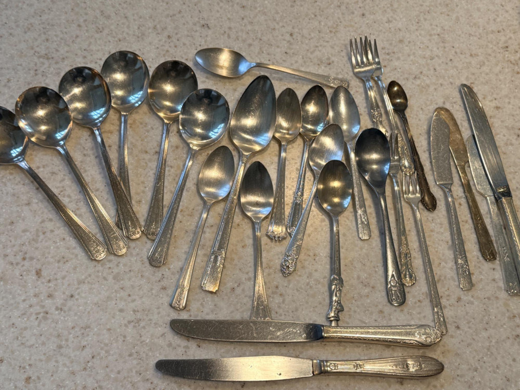 50g Sterling Silver Ladle & 27 pieces of Misc Silver Plate Flatware