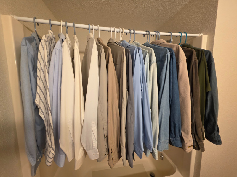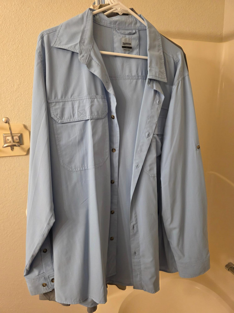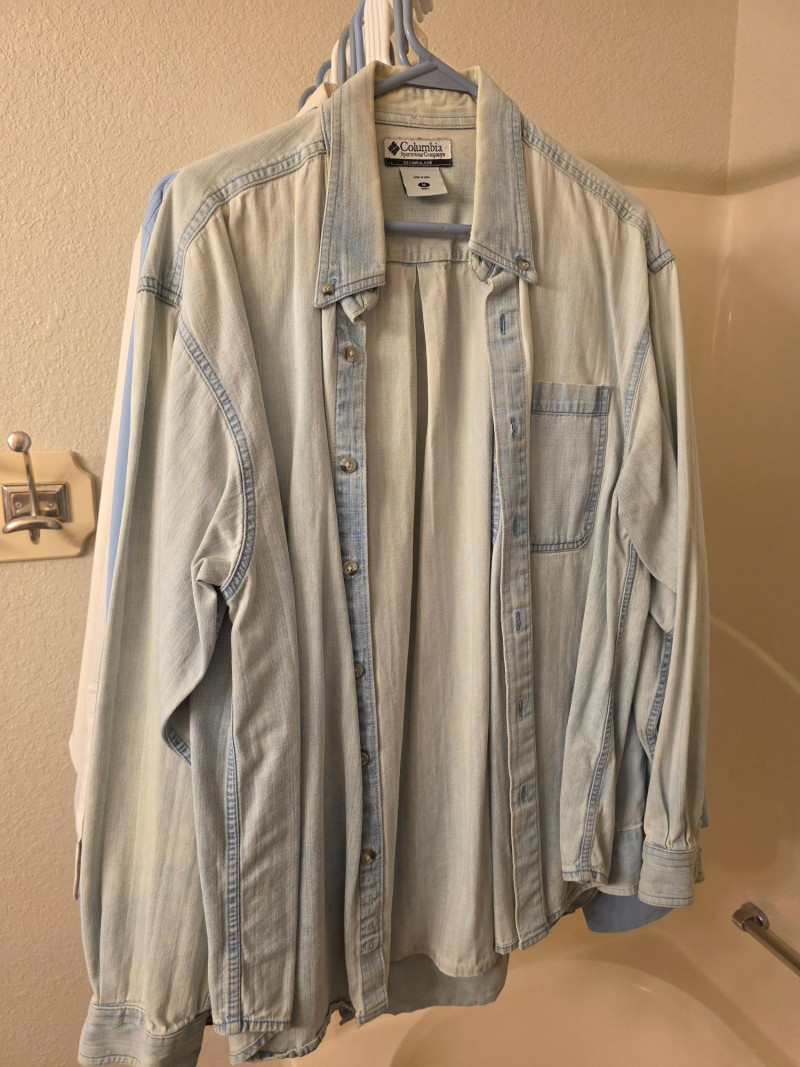 (20) Men's Long-Sleeved Button Up Shirts Men's Sizes M-XL Dress shirts, denim, corduroy, cotton Woolrich, Van Heusen, Lands End, Joe's USA, Columbia, Chaps, 33,000 Feet, Calvin Klen, Arrows and more! 20 long-sleeved shirts in all