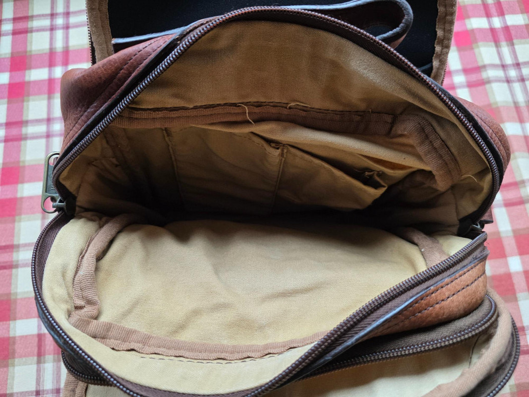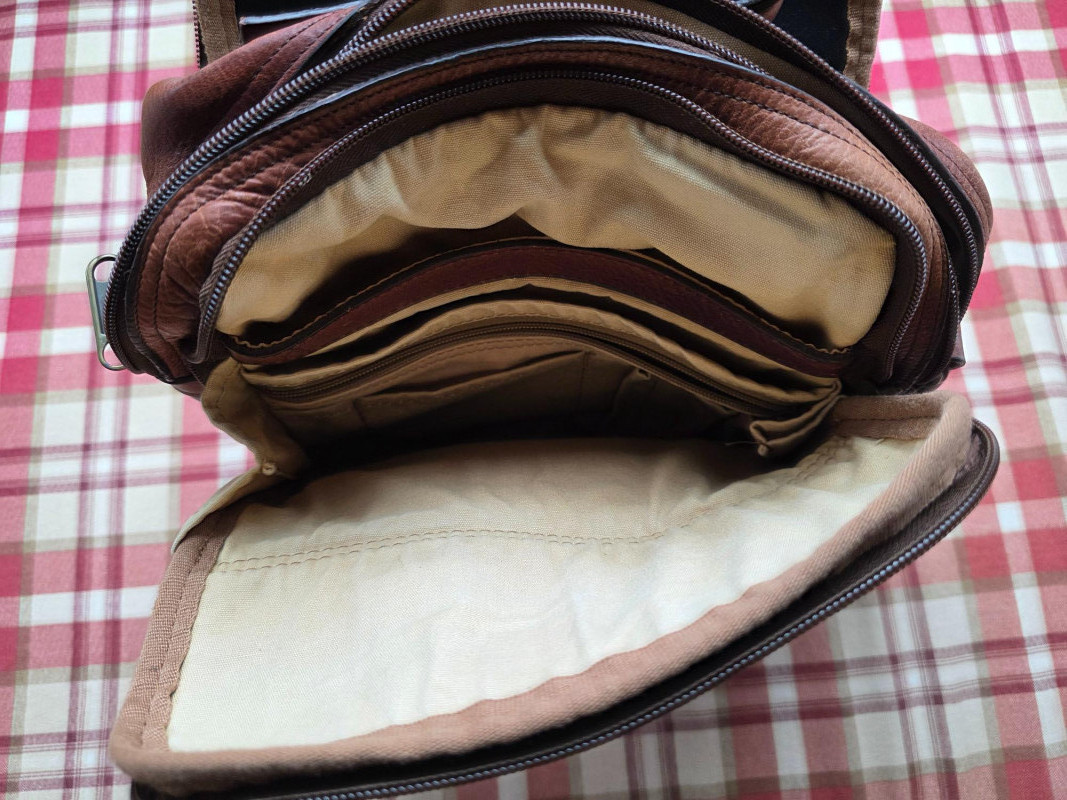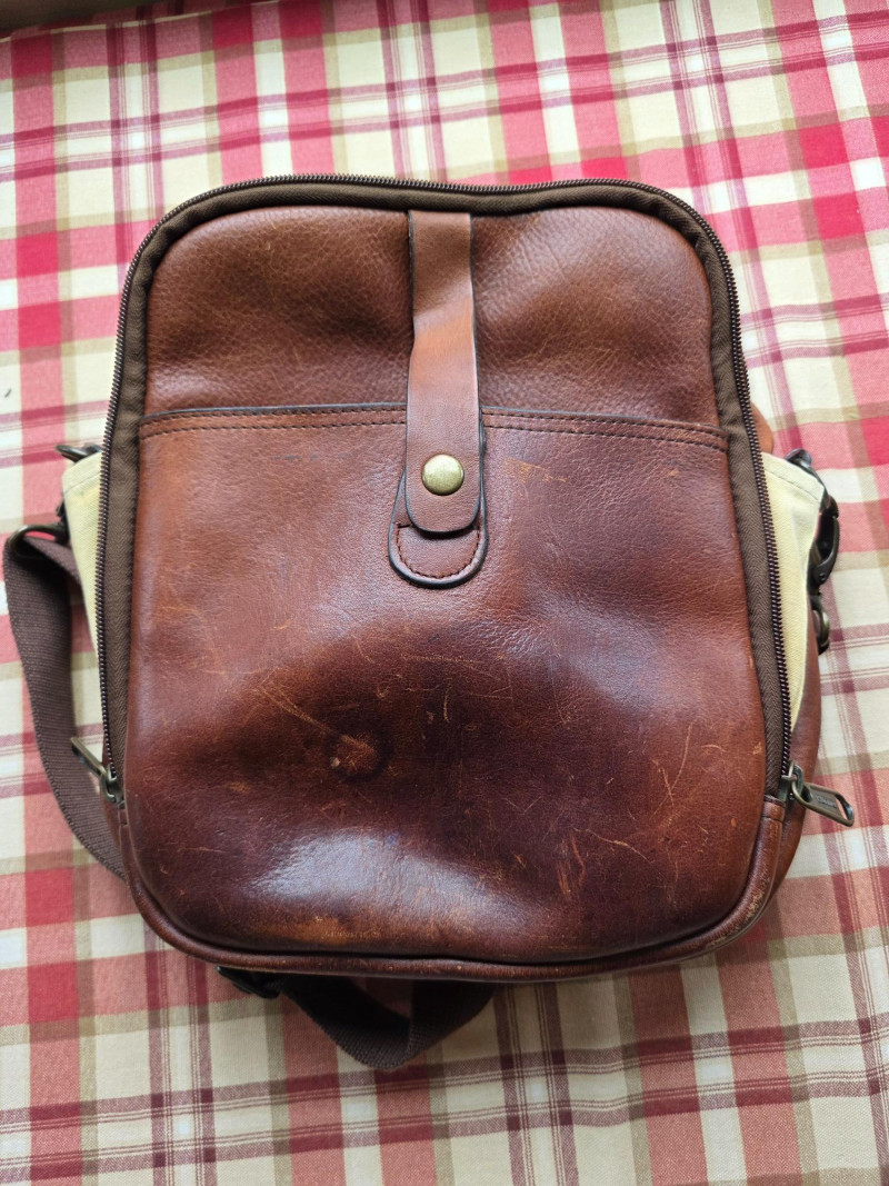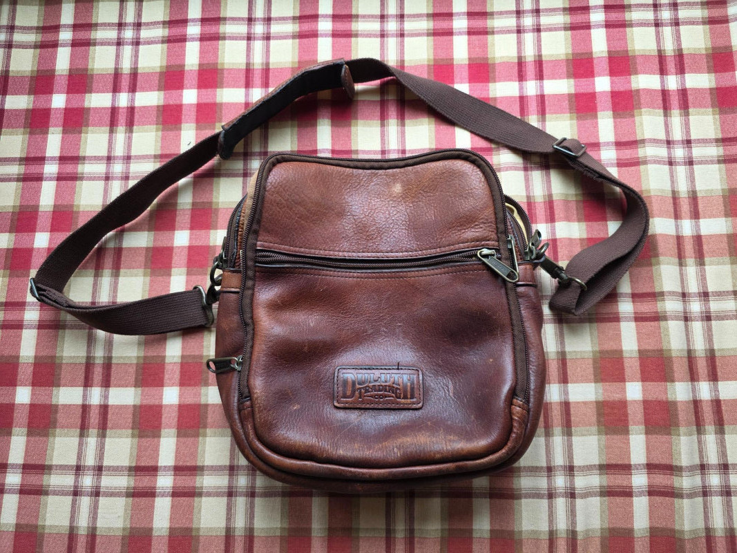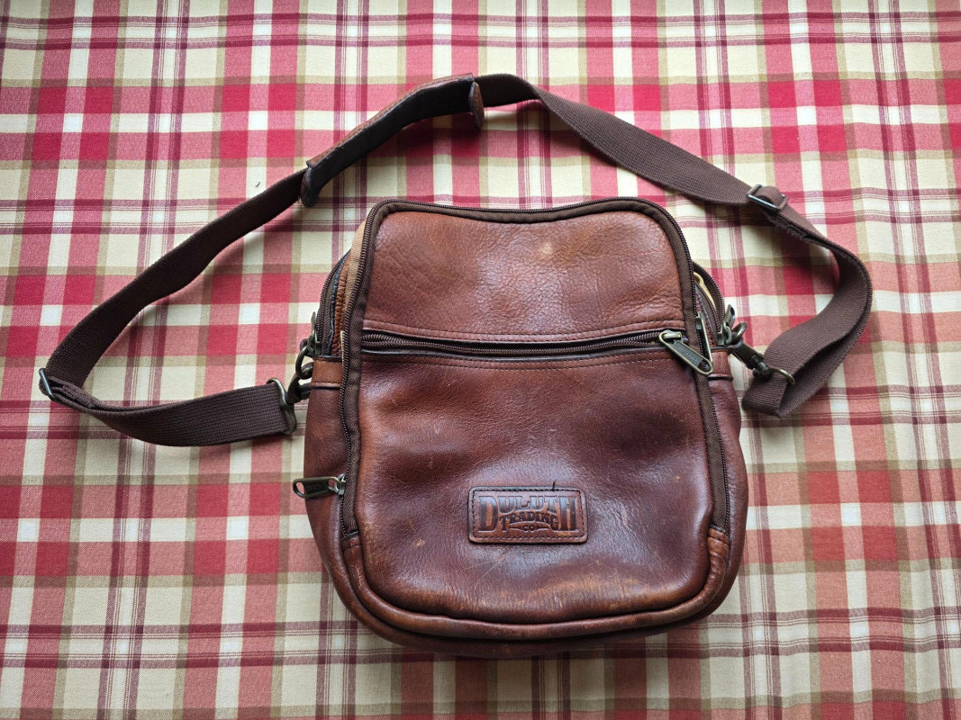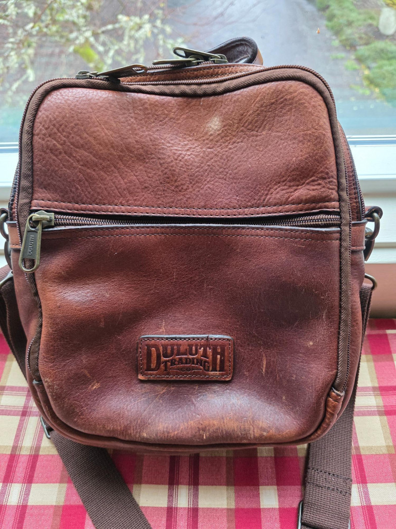 Duluth Trading Co. Brown Full-Grain Leather Travel Bag Duluth Trading Co. Lifetime Leather Travel Messenger Bag in a distressed brown finish. It is made from a durable, top-grain leather that is designed to age beautifully and last a lifetime Material: The bag is constructed from strong, genuine top-grain leather. Design: It features multiple compartments and pockets, including a main compartment, a front zipped compartment, and various interior pockets for organization. Strap: An adjustable, removable shoulder strap provides versatile carrying options. Hardware: Heavy-duty brass hardware and strong zippers 12"T x 12"W x 4"D