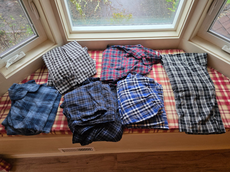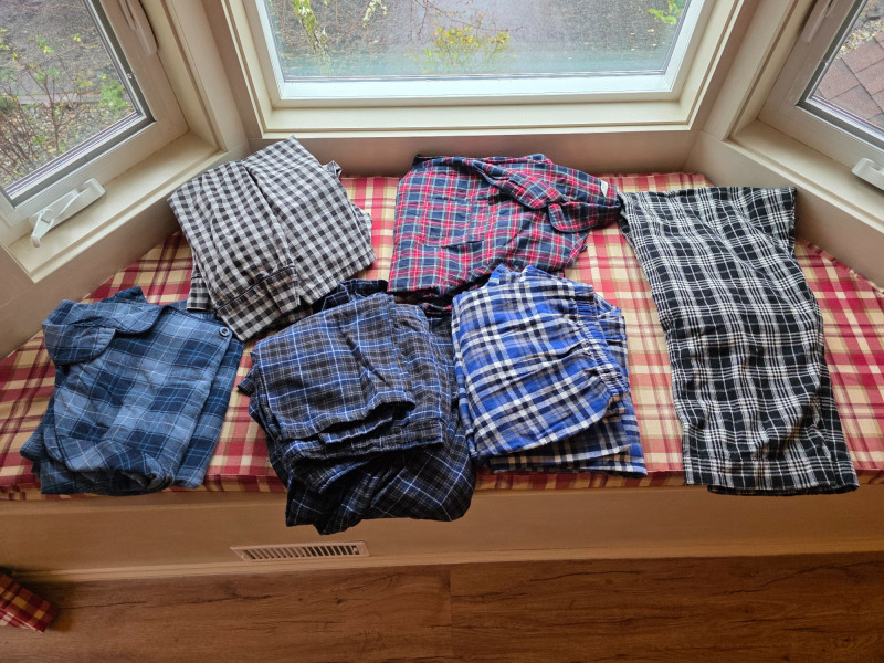 (6) Men's Pajama/Lounge Shirt & Pants Sets - Size XL Noble Mount, Storo, David Archy Woolrich (pants) In good clean condition! 11 pieces in all!