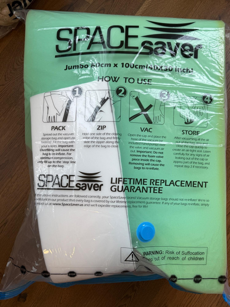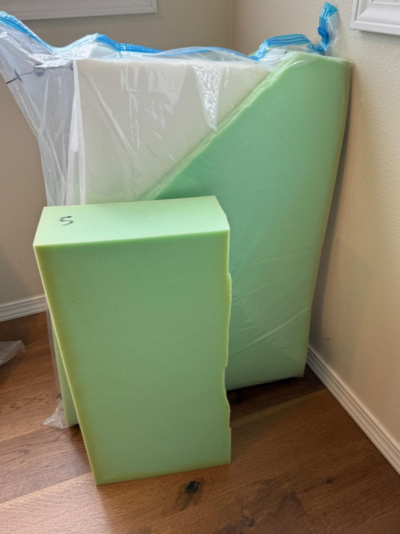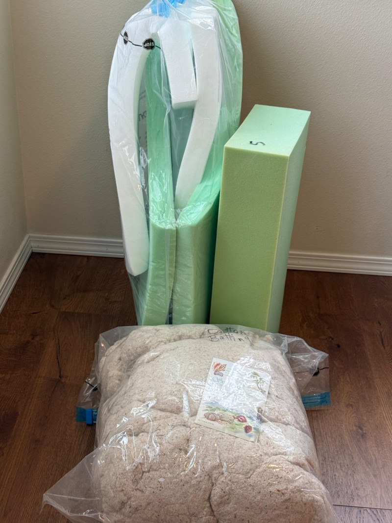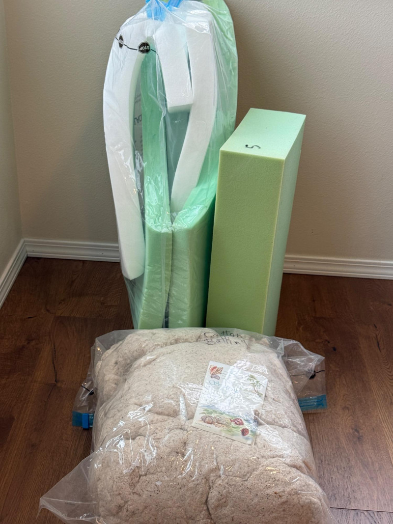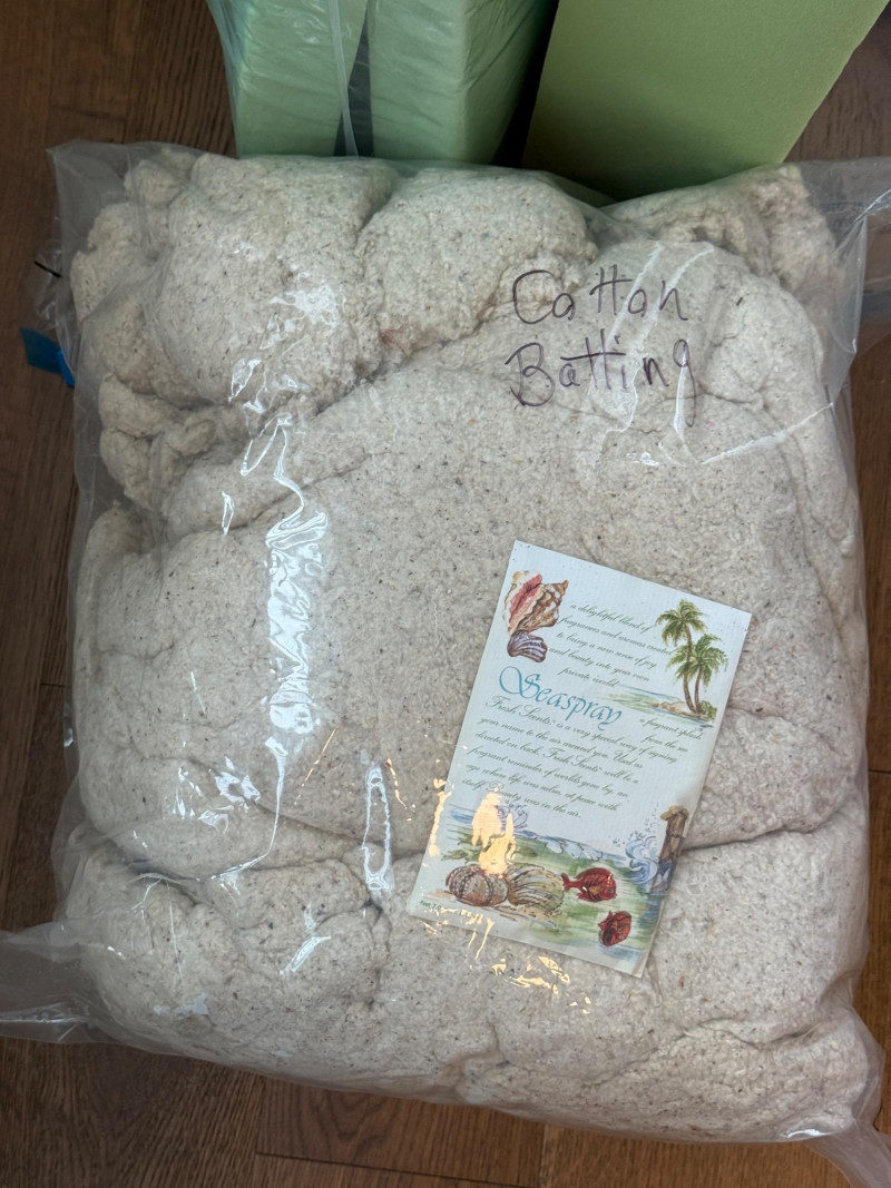 Craft Foam and Natural Cotton Batting Foam pieces in a Jumbo 40”x30” space bag.