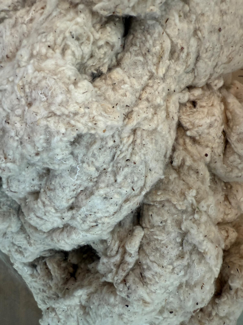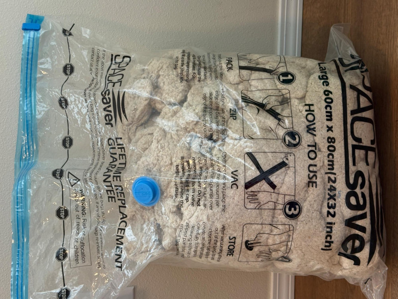 Loose natural cotton batting fills 3/4 of a Large 24”x32” space bag.