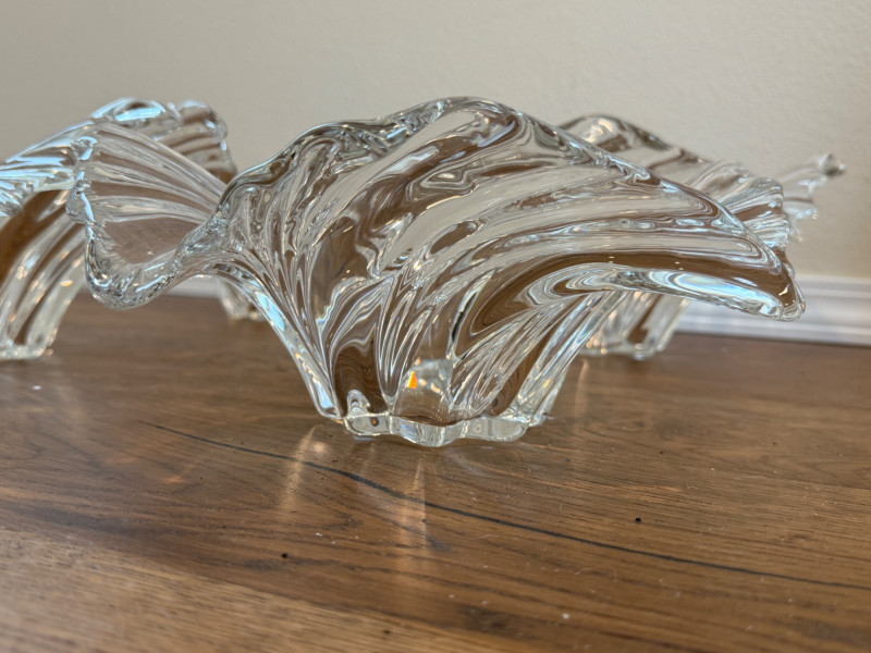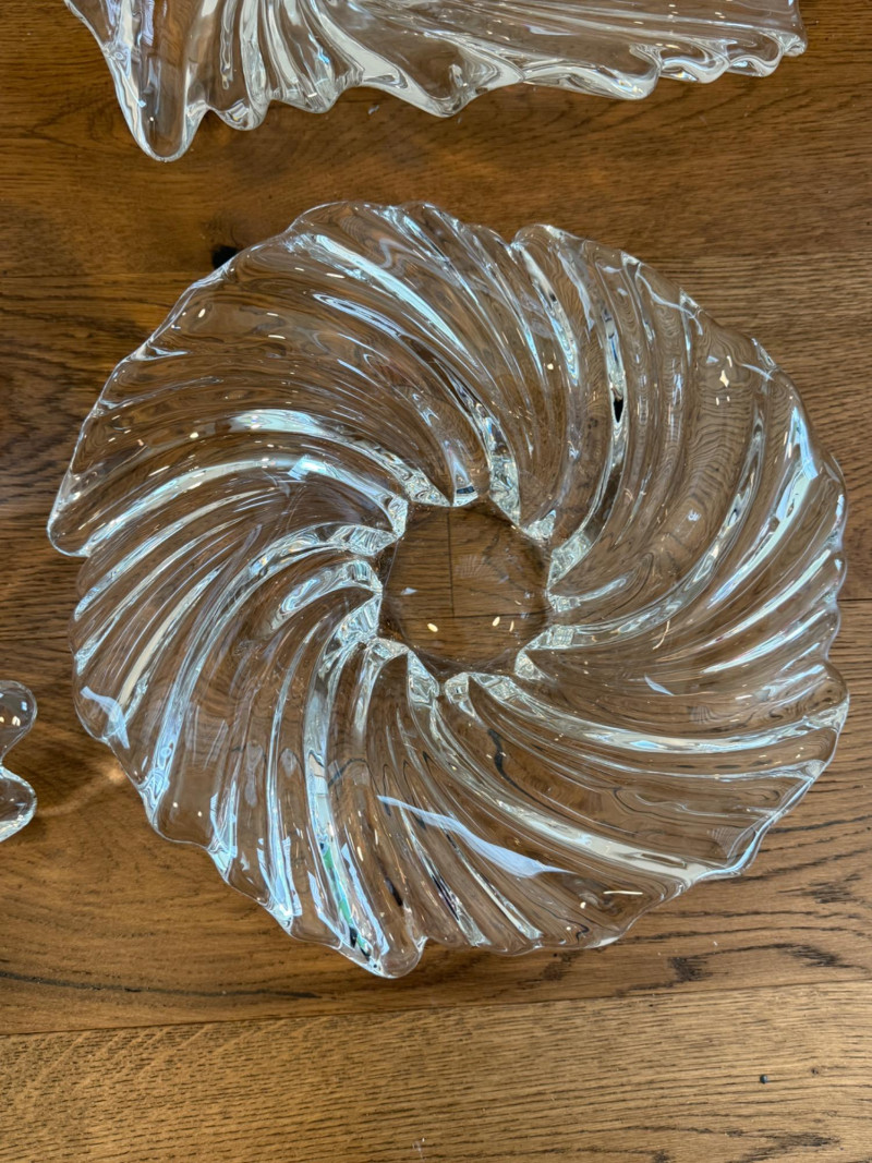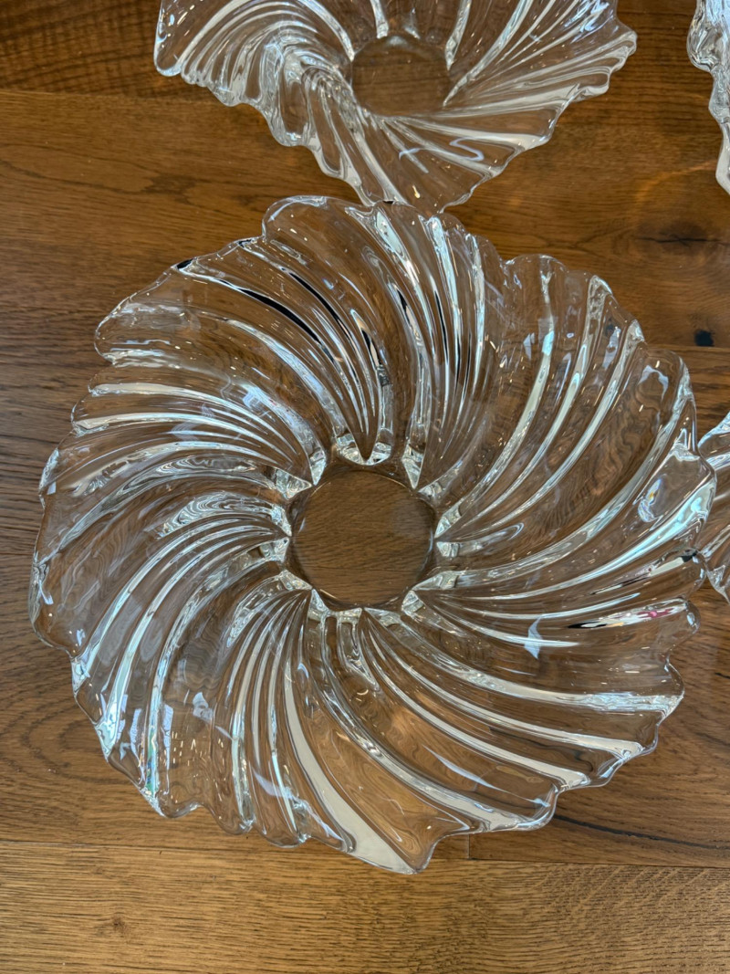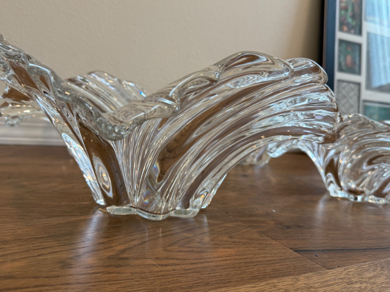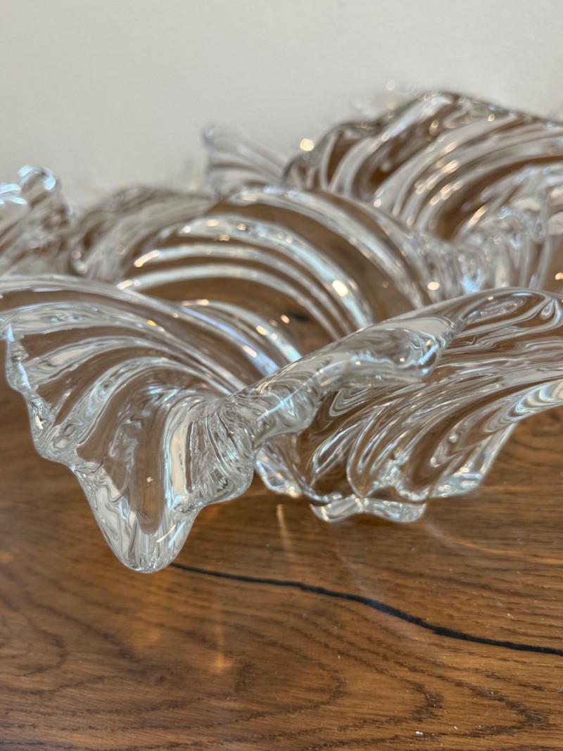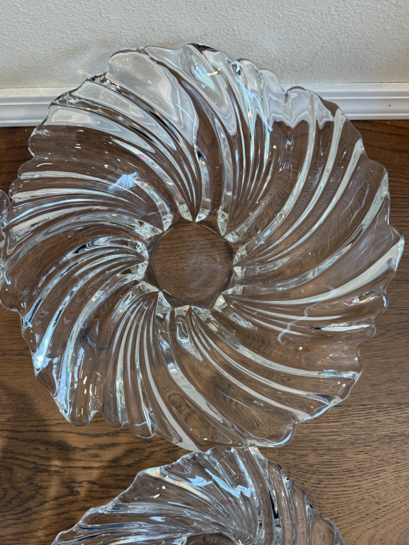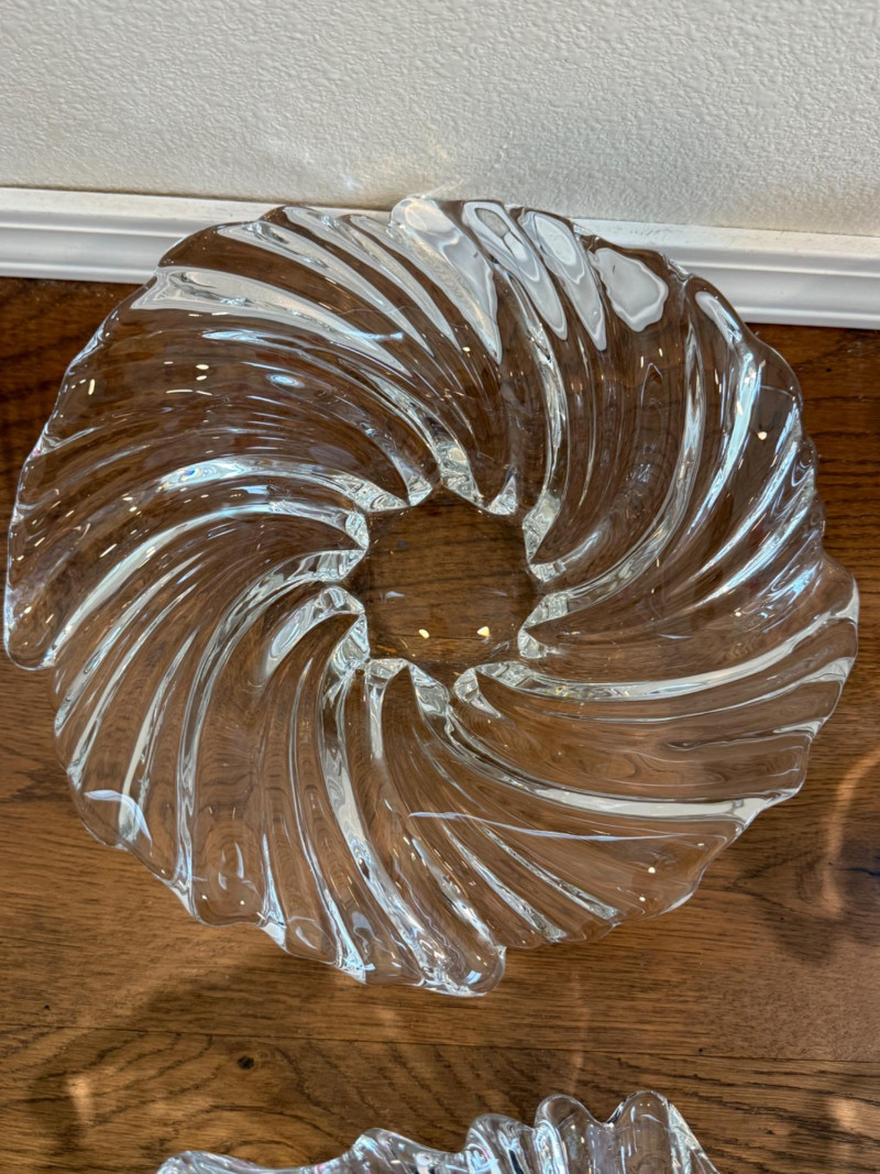 * (4) Swirl Glass Bowls 2- 12” 2- 14” Each similar with slightly different shape. A beautiful centerpiece bowl or use for parties