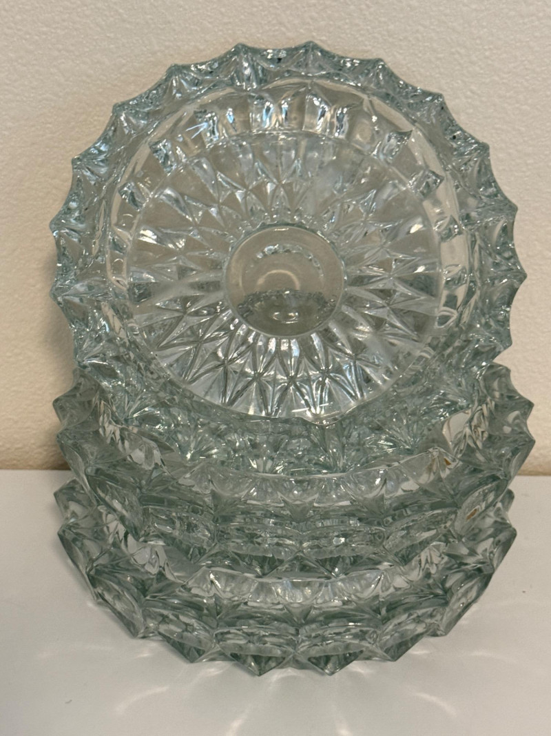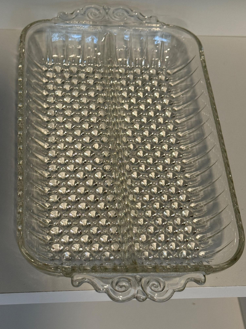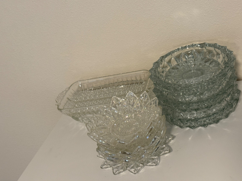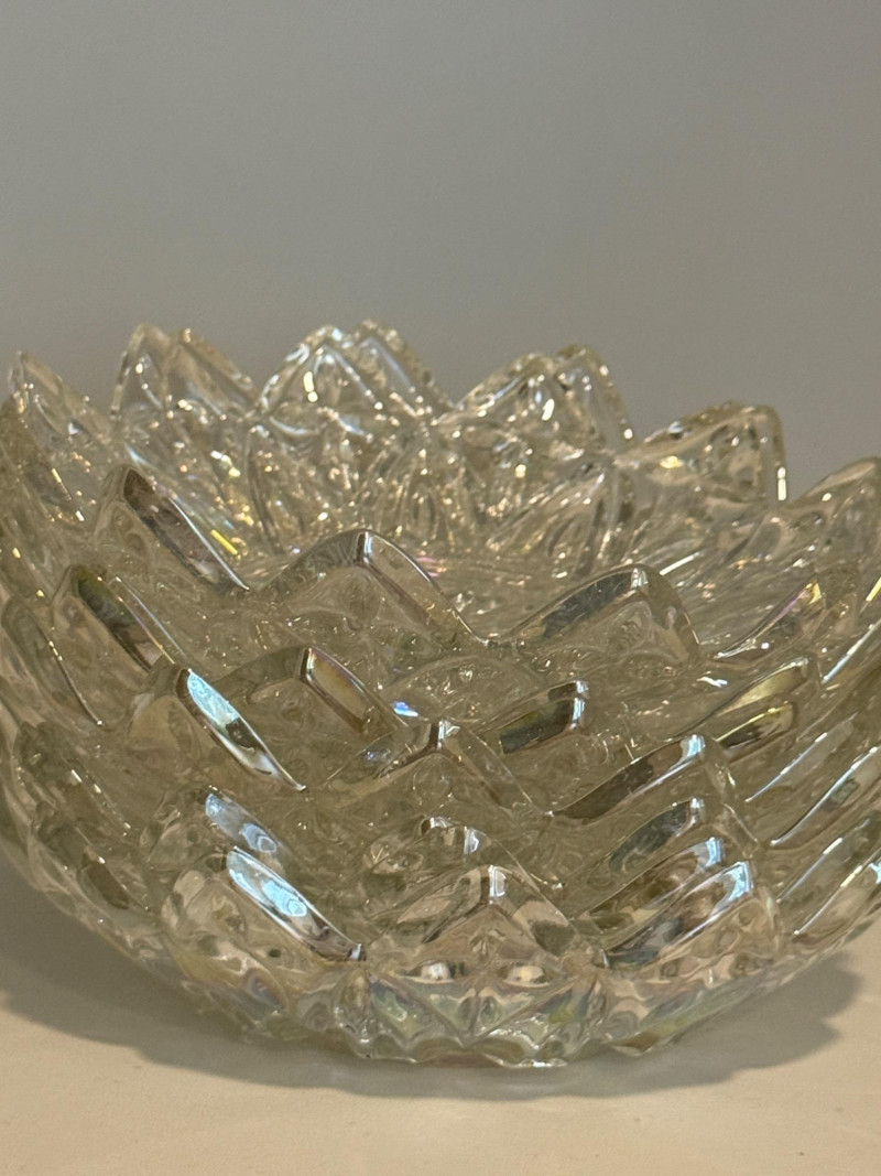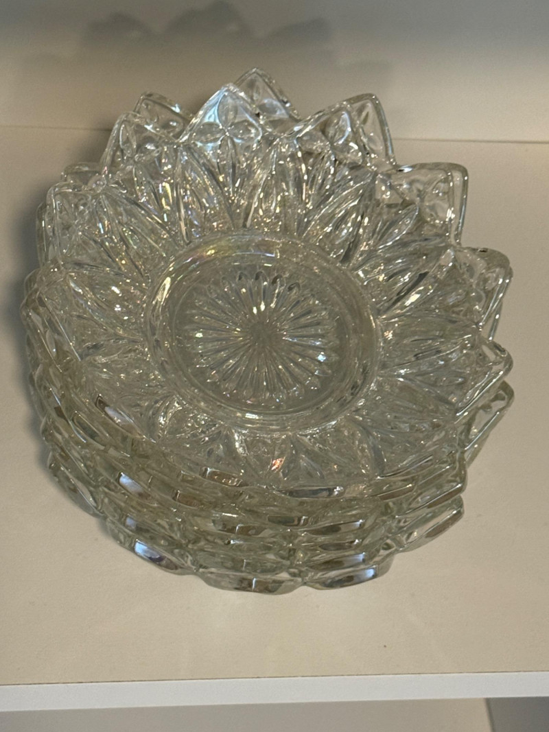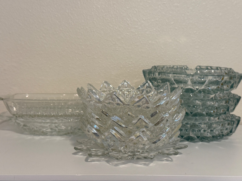 Party Pickle Plates - Nut Bowls - Ashtrays 7- 5.5” Iridescent nut dishes with zig zag edge 2- Two section olive or pickle plates 5.5 and 6” by 10”