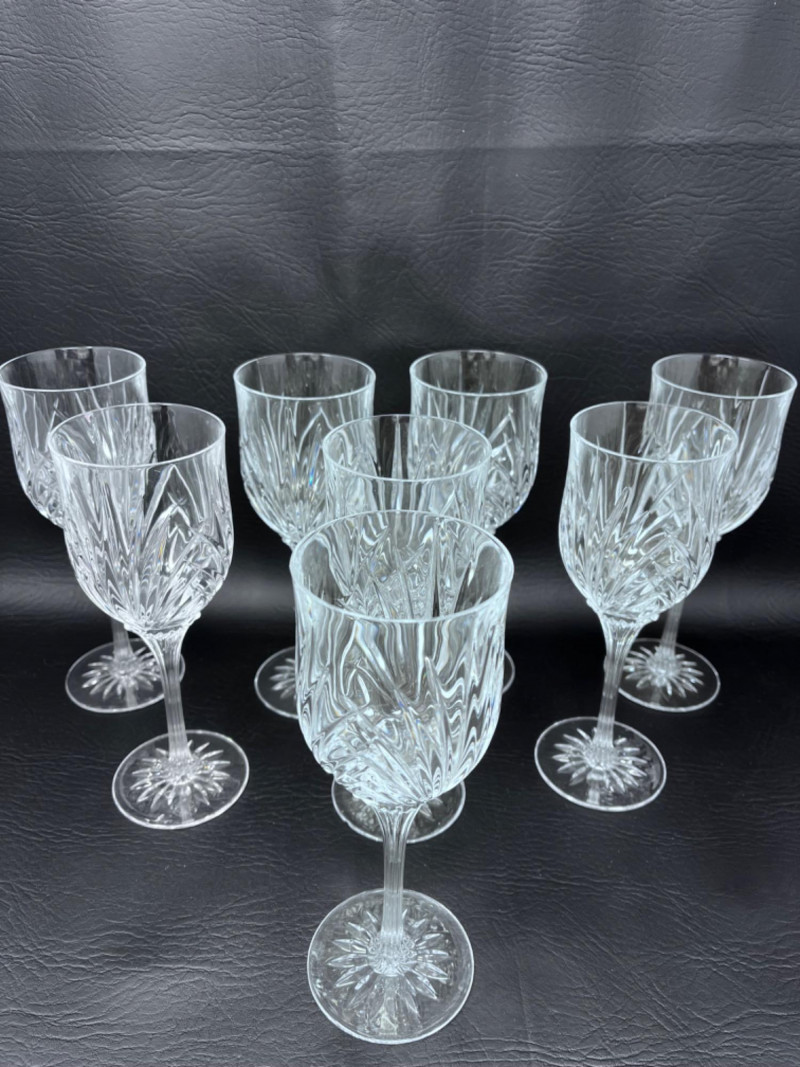 *(8) Mikasa Cut Crystal Wine Glasses Cut crystal glasses with textured stem.
