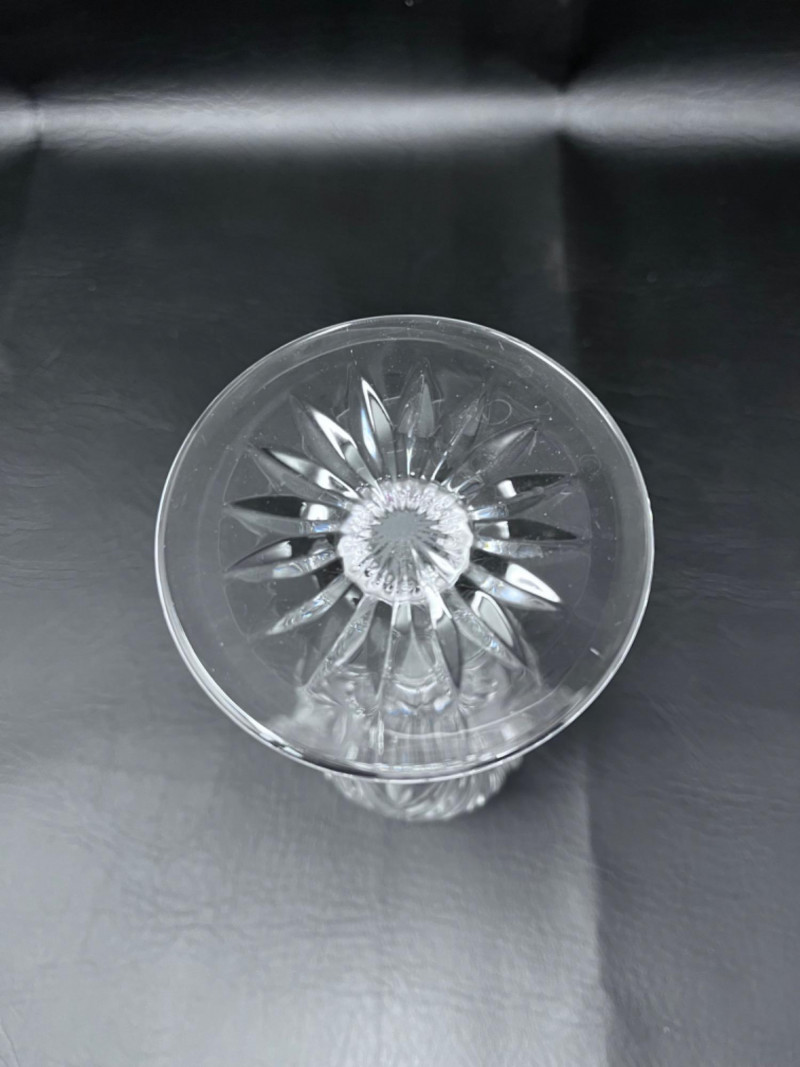 Three cut crystal champagne flutes.
