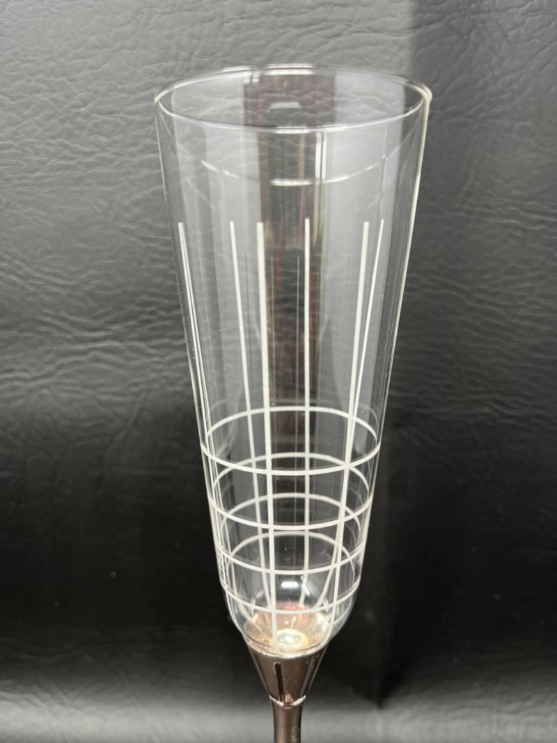 *Mikasa Champagne Flutes Collection 2.5”x8” Two etched crystal flutes with rose gold metal stems. 2.5”x11”