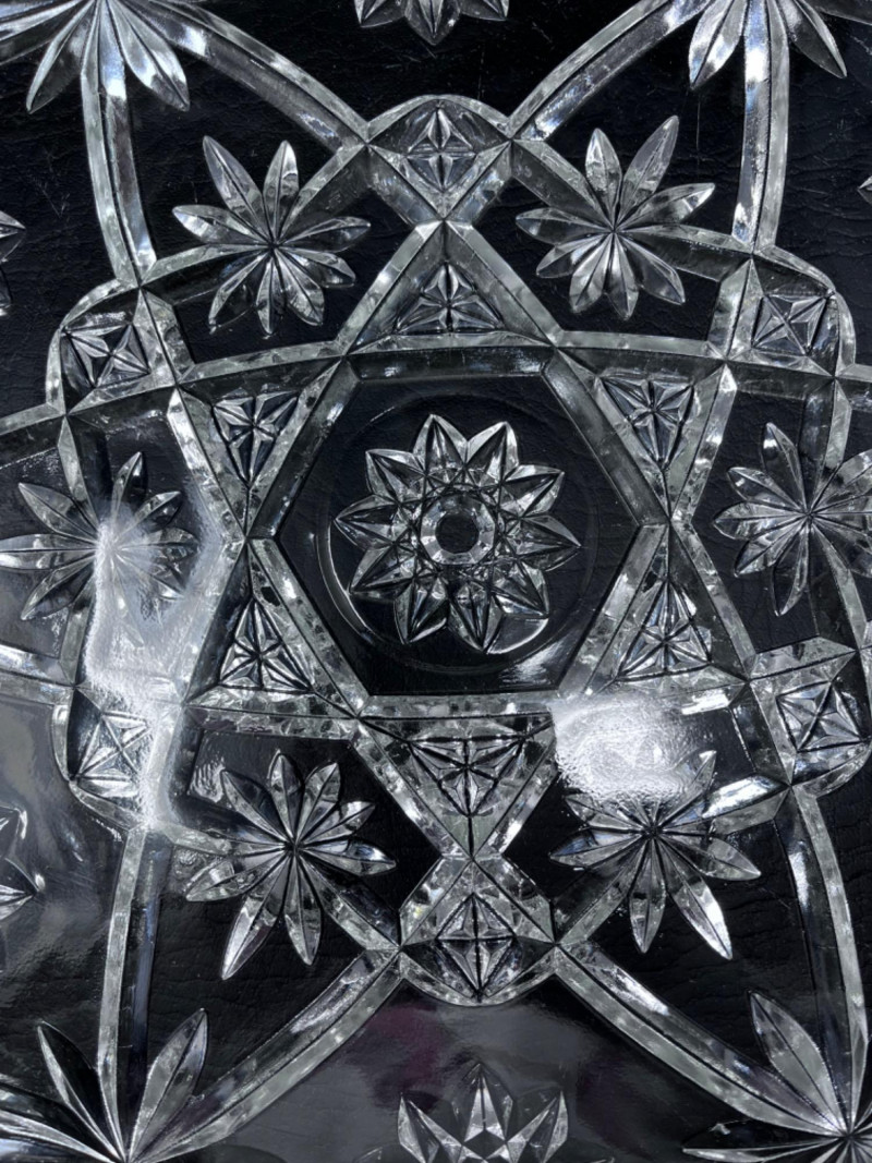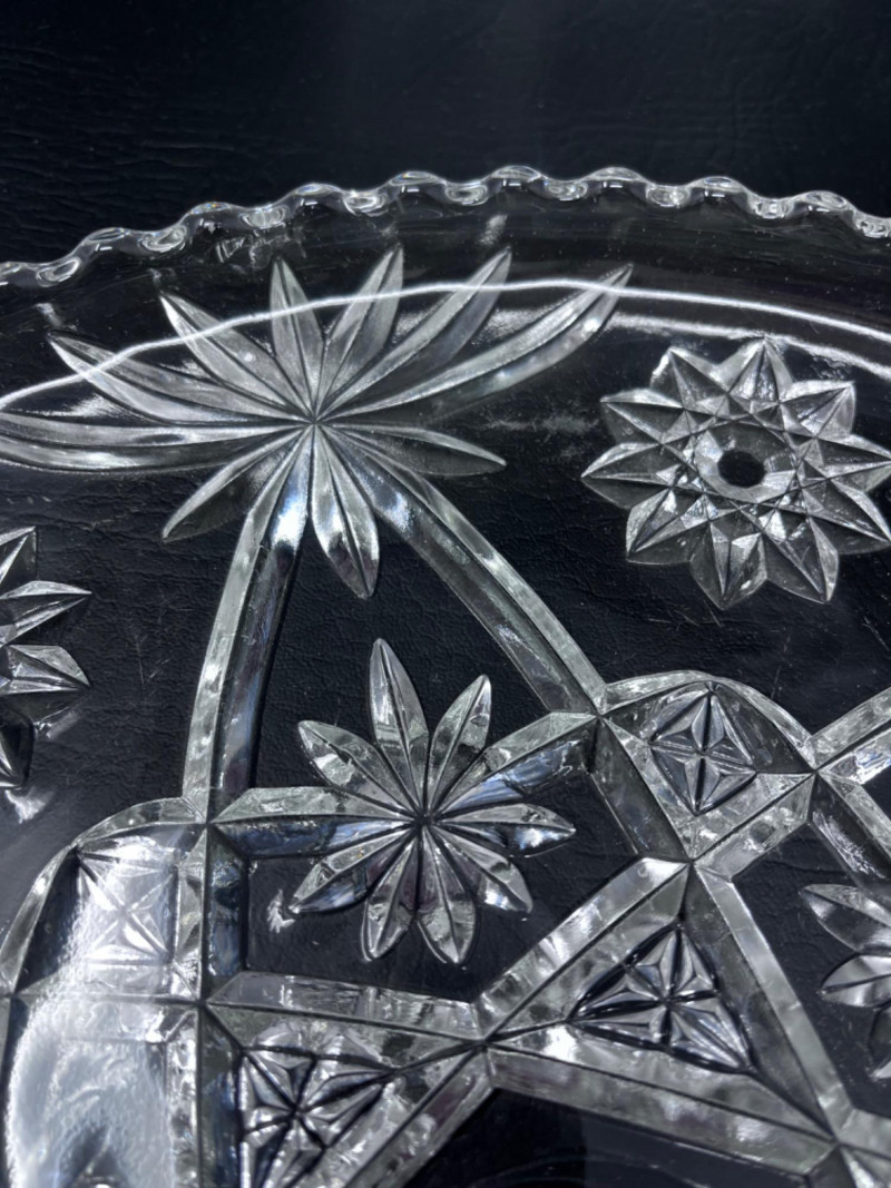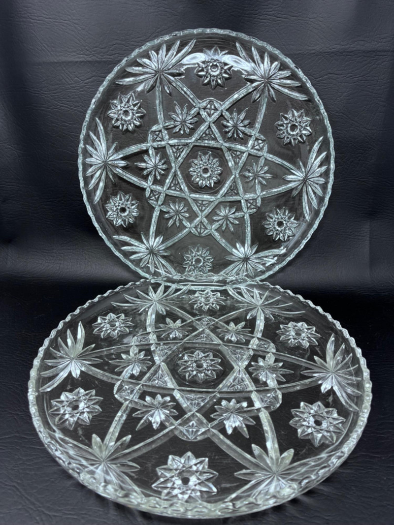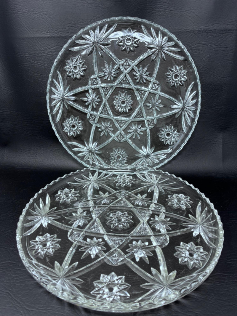 *(2) Vintage Anchor Hocking Early American Prescut Glass Serving Two pressed glass serving platter. ”Star of David” pattern. Scalloped edge. 13.5”.