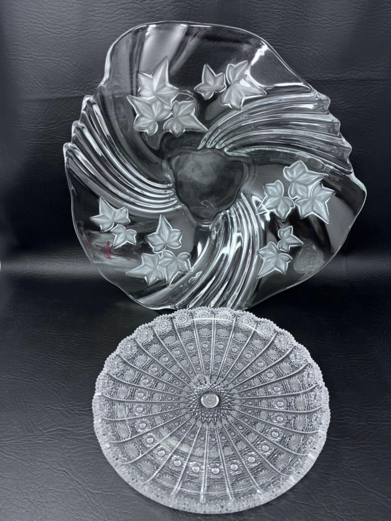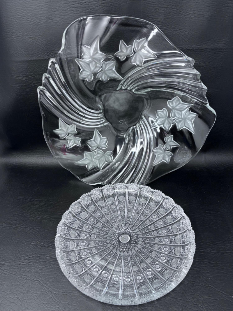 *Vintage Mikasa Handkerchief Bowl & Vintage Bohemian Cut Glass Platter Bohemian Cut Glass Platter with Queen Lace pattern. The bowl features a swirl design in the glass.