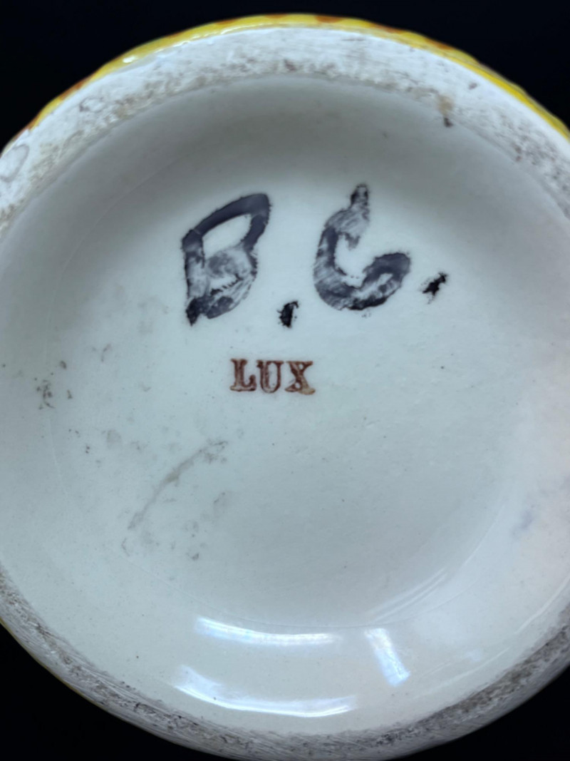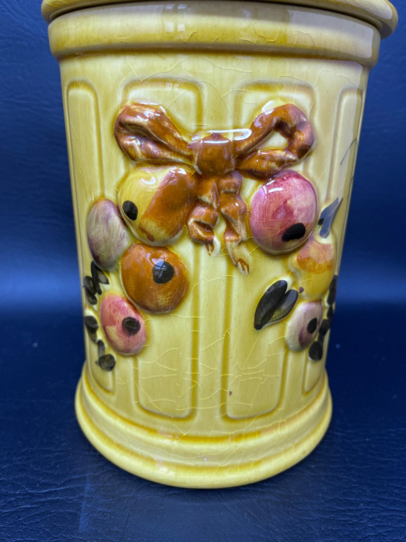 Like many vintage ceramic items, this jar likely has some crazing in the glaze, which is typical for its age.