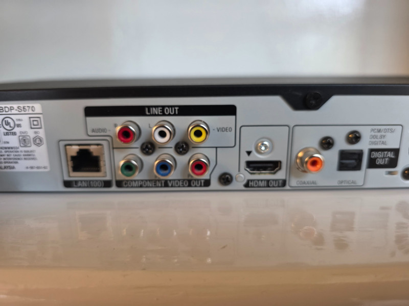 Sony Blu-Ray Disc/3D/DVD Player 1080p HDMI & WiFi Sony Model #BDP-S570 Manufactured 2010 3D Blu-ray: Plays Full HD 3D Blu-ray discs. Streaming: Built-in Wi-Fi and Ethernet for apps like Netflix, YouTube, Pandora, BBC iPlayer, etc. Media Hub: DLNA for streaming from home networks and USB ports for local media. Audio: Supports SACD, Dolby TrueHD, DTS-HD Master Audio, with digital and analog outputs. Performance: Known for fast Blu-ray disc loading and near-HD upscaling for DVDs. Connectivity: HDMI, Component/Composite video, Digital Audio (Optical/Coax), USB, Ethernet. Control: Includes a multi-brand remote and supports iPhone app control (Bravia Sync). Includes remote control Tested - Works! 1.75"T x 17"W x 7"D