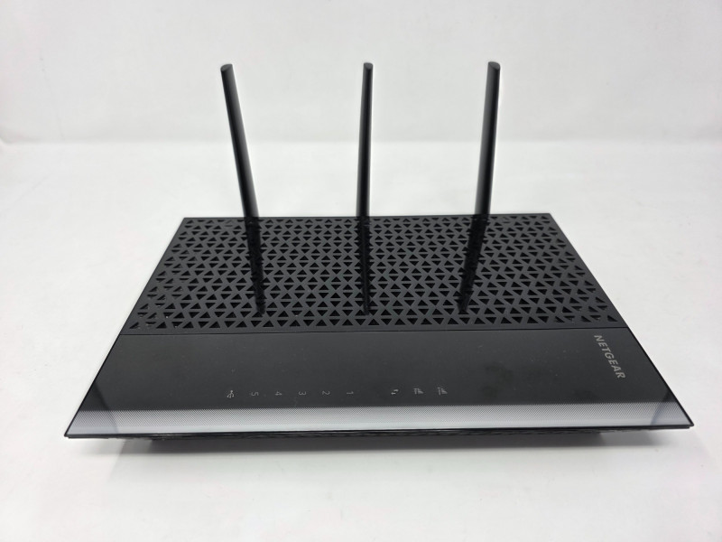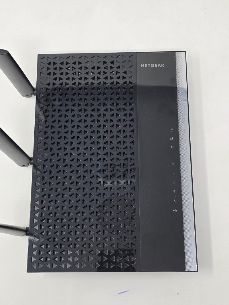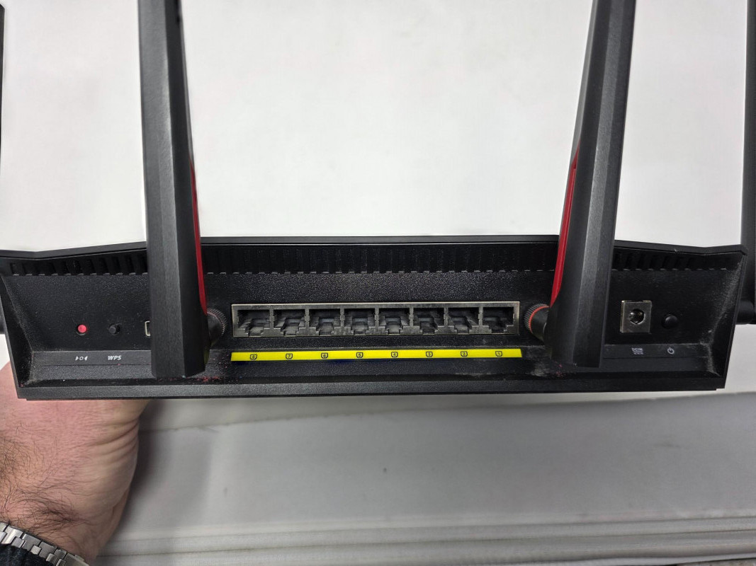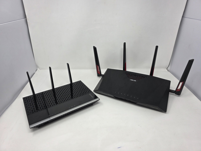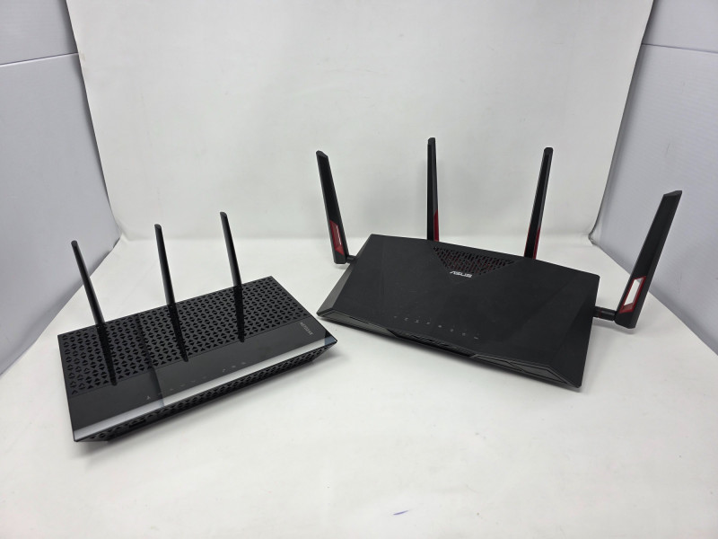 Netgear Nighthawk AC1900 WiFi Range Extender & ASUS AC3100 Dual-Band WiFi 5 Router (1) Netgear Nighthawk AC1900 WiFi Mesh Range Extender Netgear Model #EX7000 Speed: AC1900 (up to 1900Mbps) on dual-band Wi-Fi. Coverage: Extends Wi-Fi to cover larger areas (e.g., up to 2100 sq ft). Mesh Technology: Works with your existing router to create a seamless mesh network with smart roaming. Ports: Five Gigabit Ethernet ports for connecting wired devices (consoles, TVs) and one USB 3.0 port. Performance: High-powered design with a dual-core processor for strong performance. 1.25"T x 9.75"W x 7"D (1) ASUS AC3100 Dual-Band WiFi 5 Router ASUS Model #RT-AC3100/RT-AC88U Wi-Fi Speed: AC3100 (up to 2167 Mbps on 5GHz, 1000 Mbps on 2.4GHz) with 1024-QAM. Processor: 1.4 GHz dual-core CPU. Antennas: Four external antennas with 4x4 MIMO. Gaming: Built-in game accelerator and Adaptive QoS for prioritizing game traffic. Connectivity: 4 Gigabit LAN ports (with Link Aggregation for 2Gbps) and USB 3.0/2.0 ports. Security: AiProtection powered by Trend Micro, including parental controls and malicious site blocking. Network Management: AiMesh compatible for mesh Wi-Fi systems and intuitive ASUSWRT interface. AiCloud: Access files remotely. 2"T x 12"W x 7"D Both include power cables Both Tested - Both Powered On!