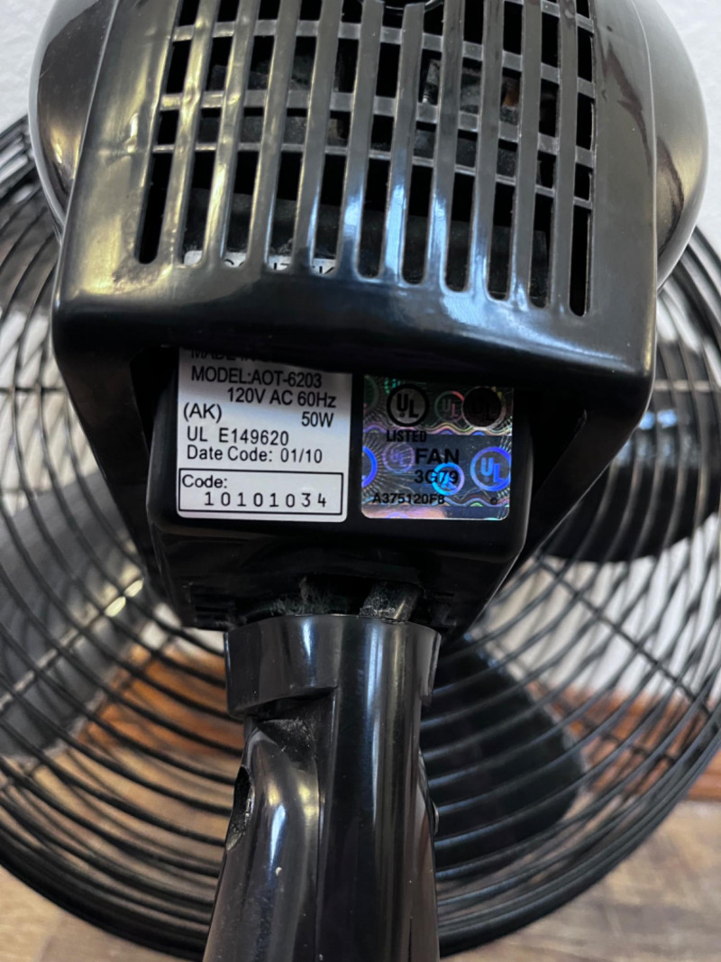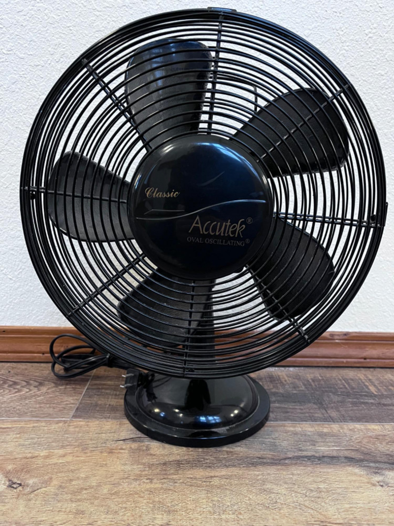 Accutek Oscillating Fan Comes with a 4-position (Off-Hi-Med-Lo). Tested: Works. 15”x12”x17.5”