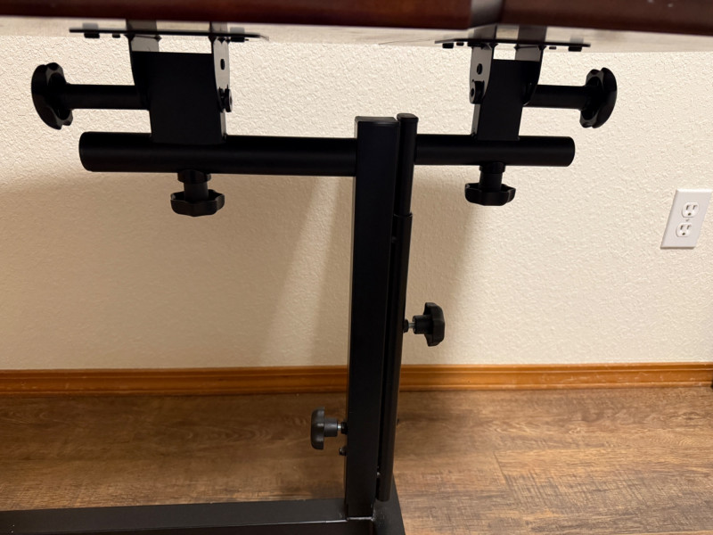 The table's height can be adjusted, typically ranging from about 27 inches to approximately 37” to suit various uses and different furniture heights. The width can also expand.