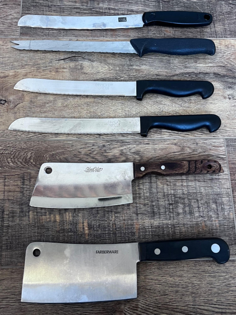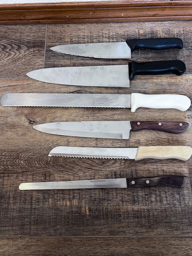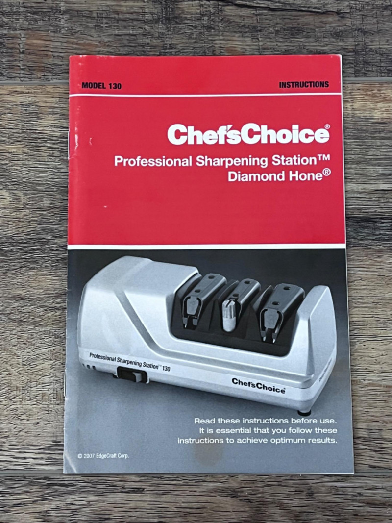 Chef’sChoice Professional Sharpening Station 130 & Knife Collection 9.5”x4”x4.5” Instruction manual included. Tested: Turns on. Knife collection Good Cook Faberware Kane Kut Two Diamond Cuts Lamson Regent Sherwood Two Surgical Stainless Regent Swords Ontario Knife Co. American Angler Four unnamed knives.