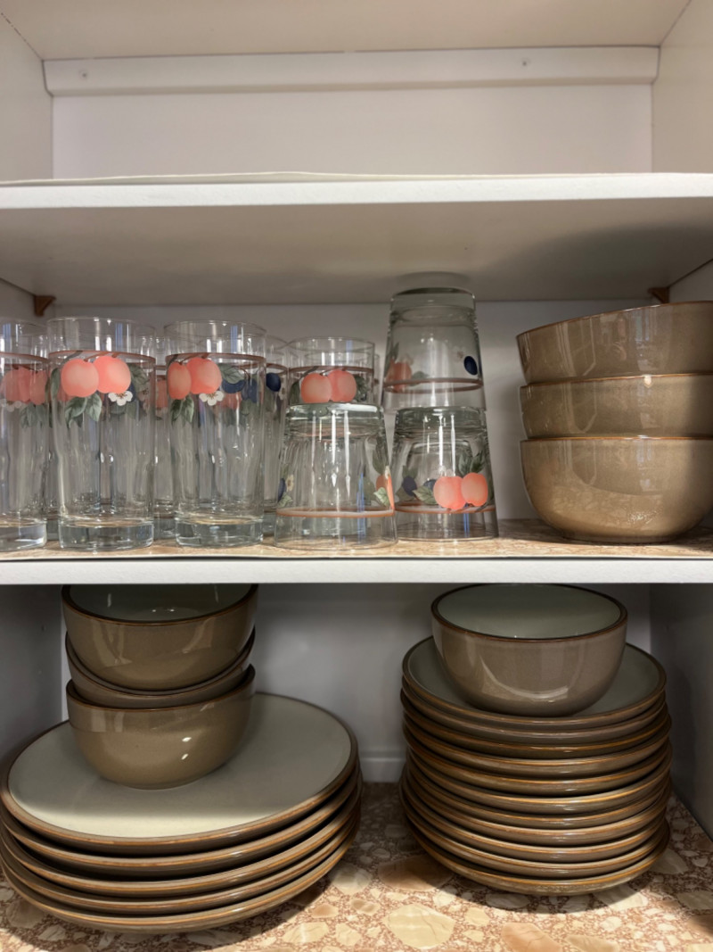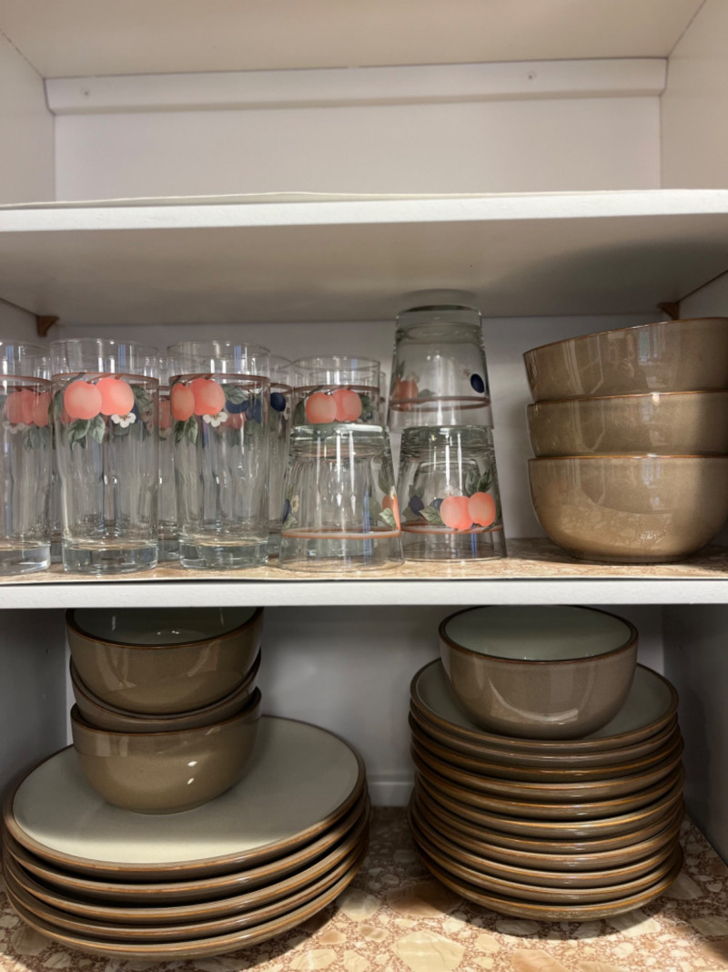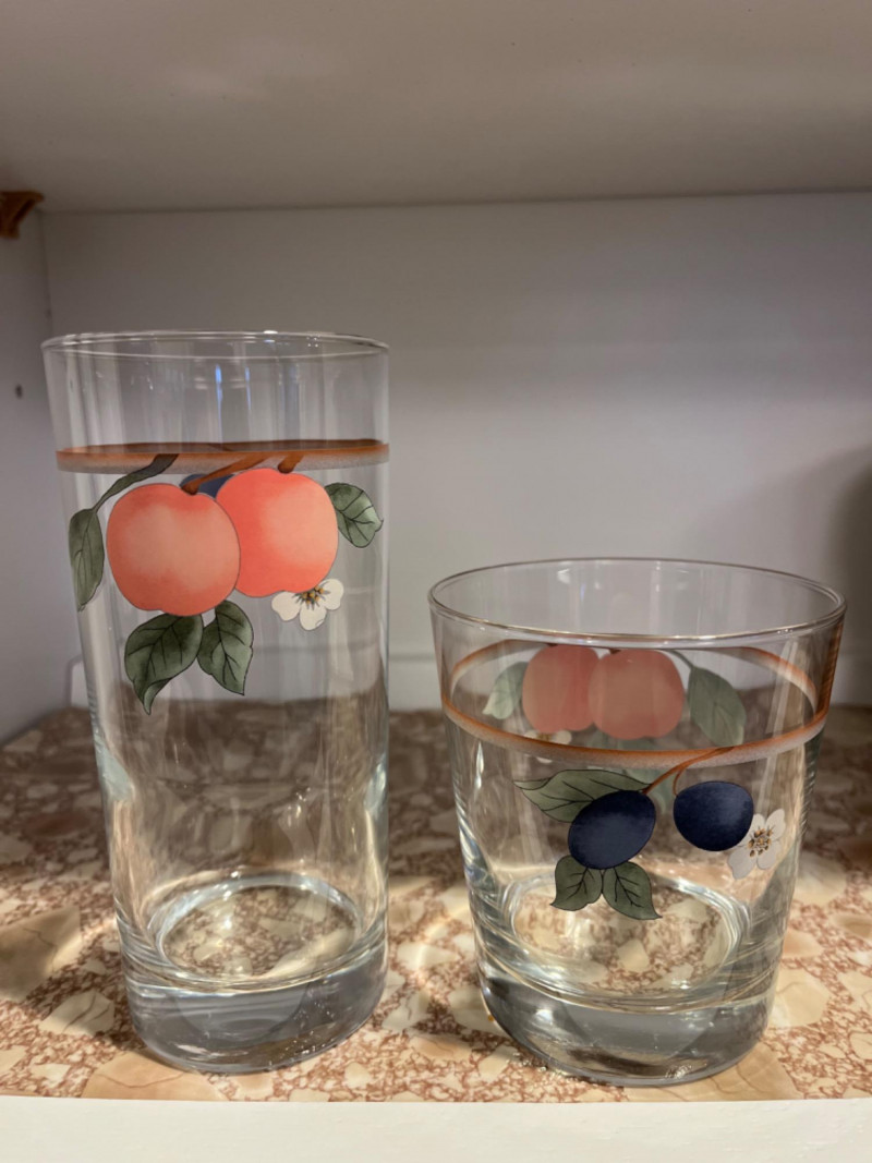 Dansk Dinner Set & Mikasa Fruit Panorama Glasses 11” 11 salad plates Seven bowls 6”x3” Ten 16 OZ. Mikasa glasses Four 10 OZ. Mikasa tumblers