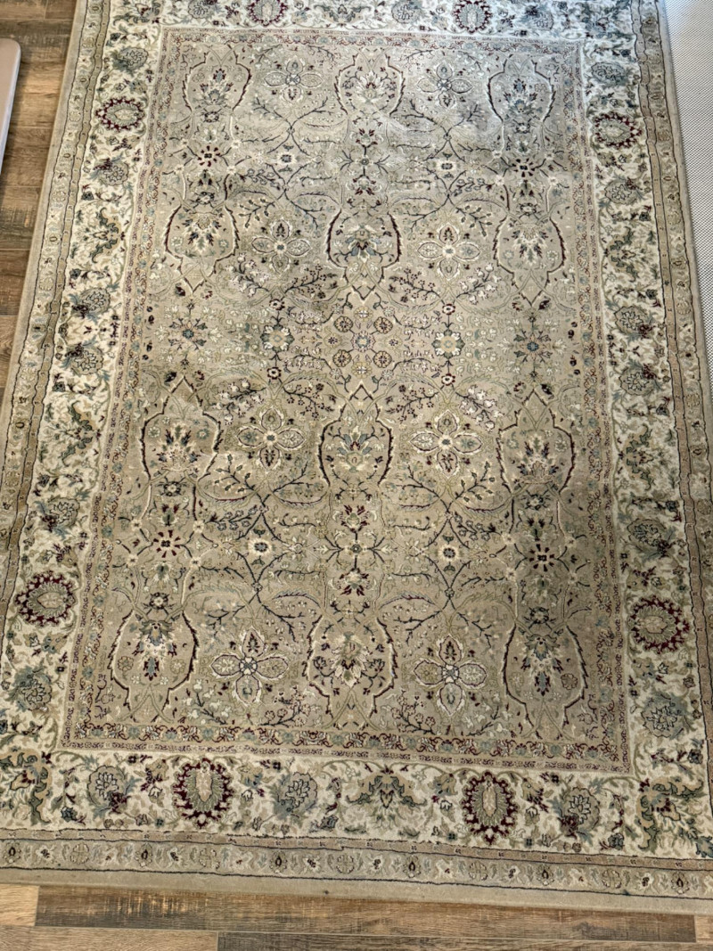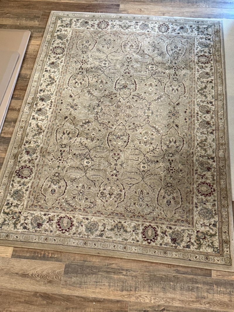 Kathy Ireland Home Gallery Area Rug by Nourison “American Jewel” with non-slip pad. # 92003 Cream 5’3”x7’4” Some cleaning needed.