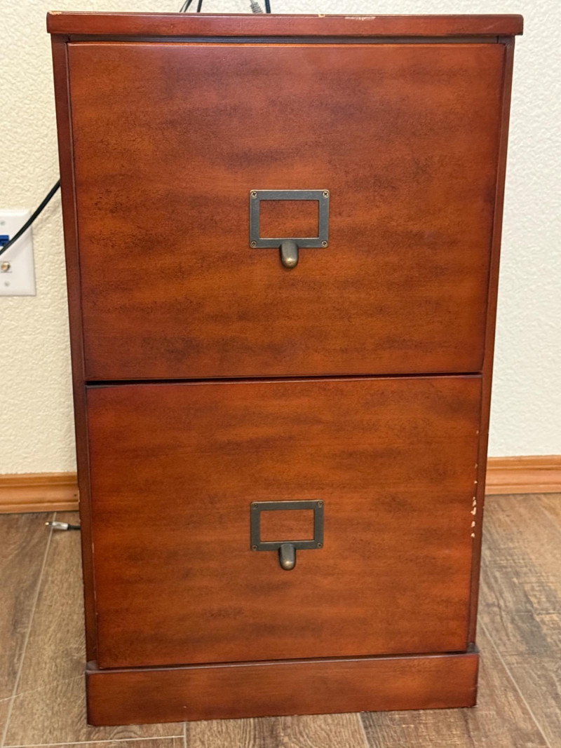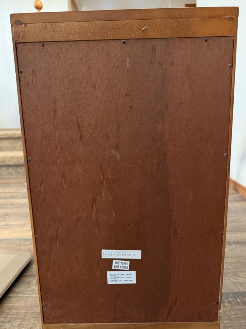 Ballard Designs Wood 2 Drawer File Cabinet with full extension glides. Some touch-ups needed. 16”x19”x27”