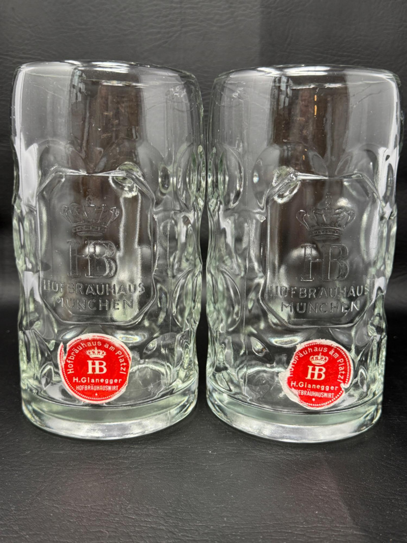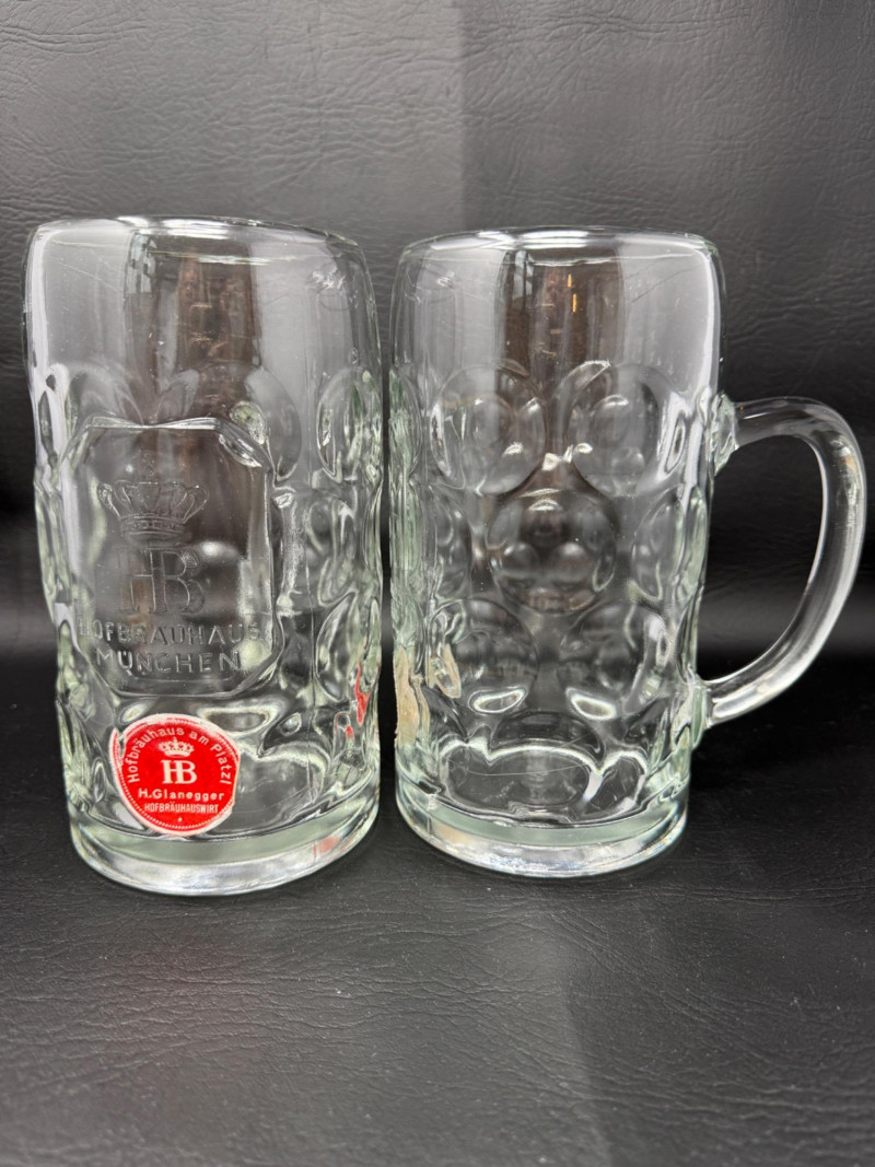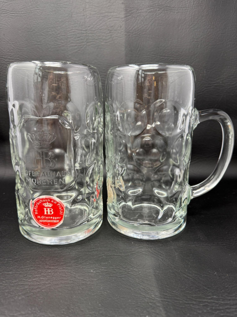 (2) Hofbrauhaus Muchen German Steins. True German Beer 1 Liter Steins With Dimpled Glass Measures 4”x8” Roll out the barrel…