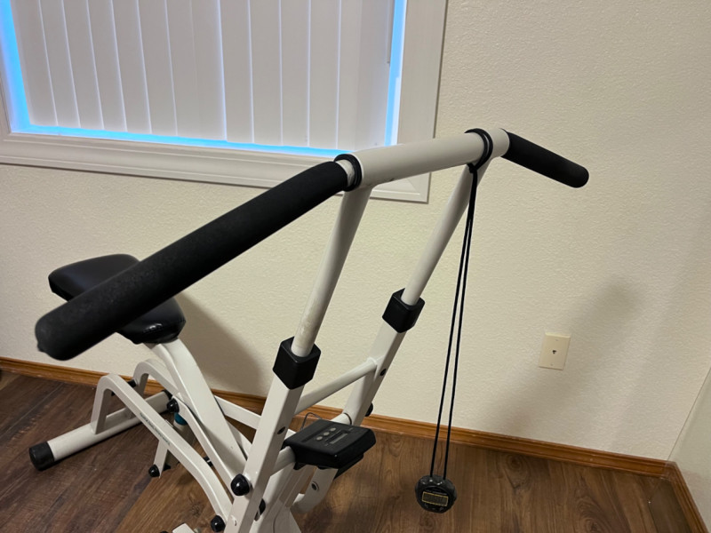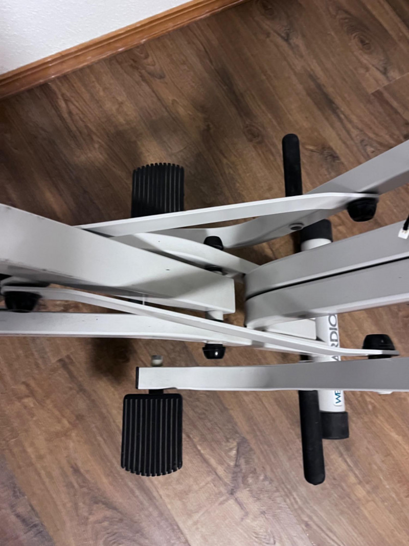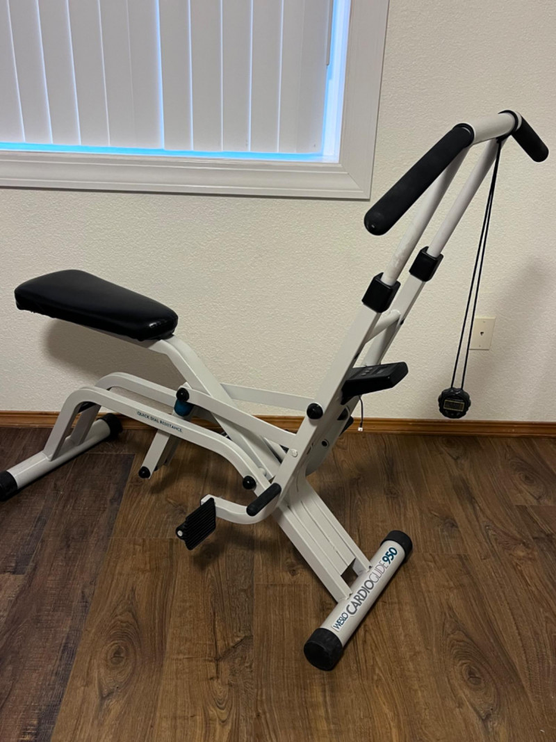 WESLO CardioGlide 950-See Details Quick dial resistance. Adjustable handles. Electric panel for mode, scan, & on/off does not work. Possible corrosion on circuit board. Comes with SportLine timer. 31”x43”x43.5” Seat is 19”x9”.