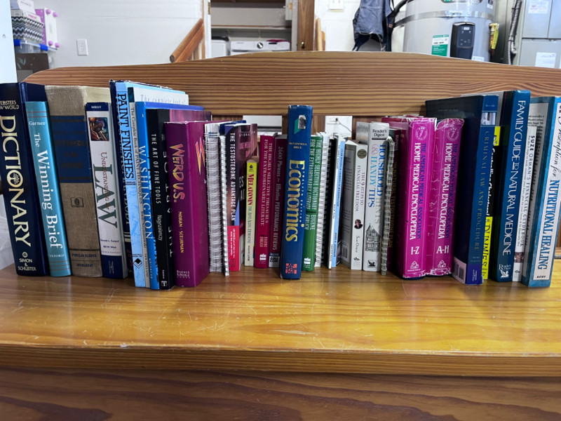 Natural Health Books–Law & Econ Laws–Edible Sealife & So Much More! Books on law, natural health, digging clams in Washington, home painting techniques & so much more! Some books pages are warped.